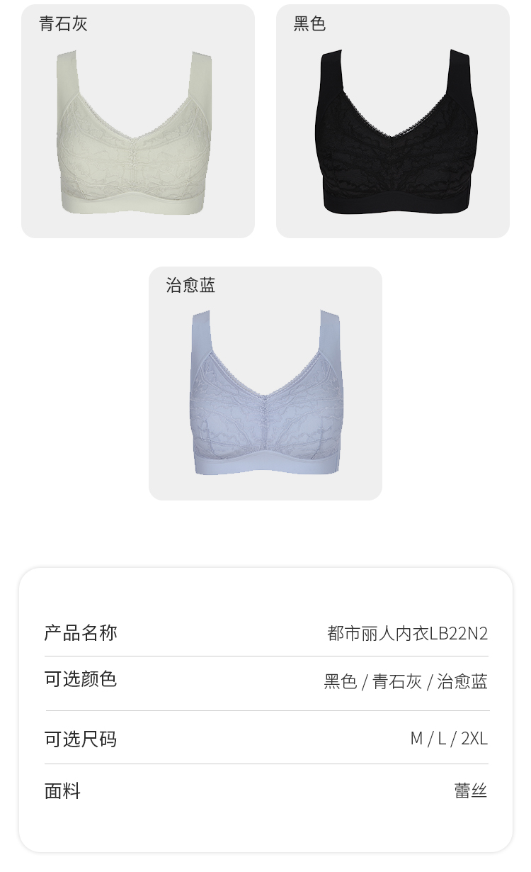 都市丽人内衣薄蕾丝四排扣无钢圈3/4杯VBRALB22N2