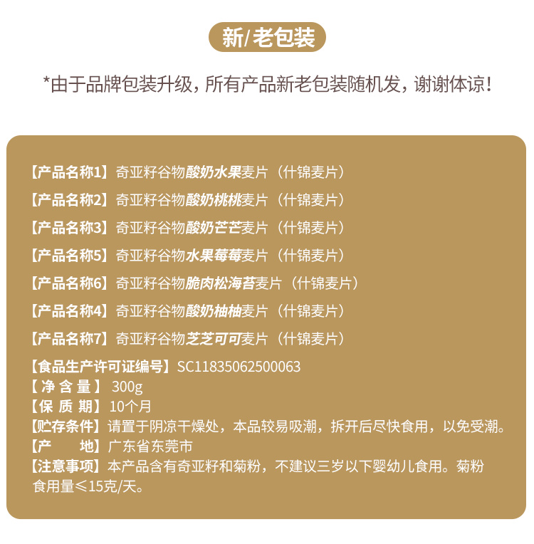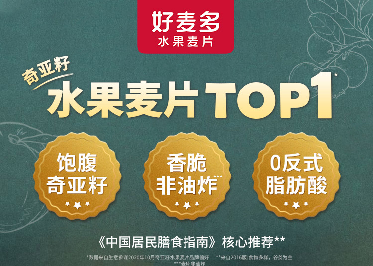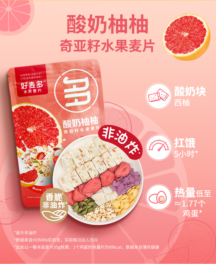 【买3赠2】好麦多\HONlife奇亚籽王牌水果麦片组合(1040g/组)[福利品]