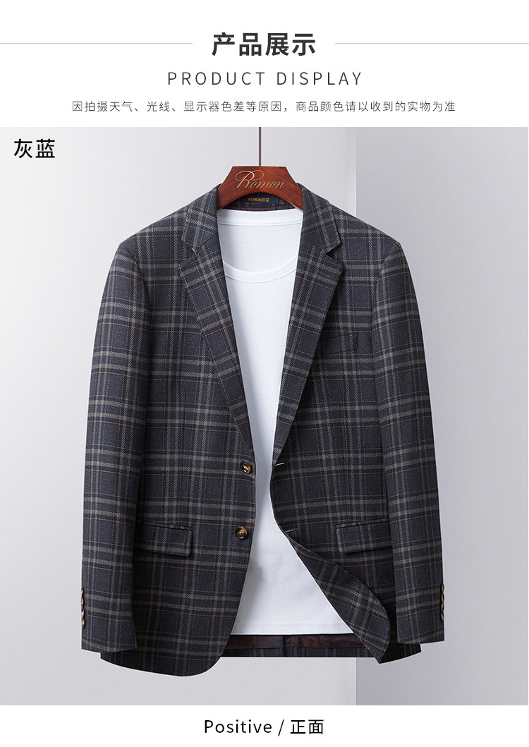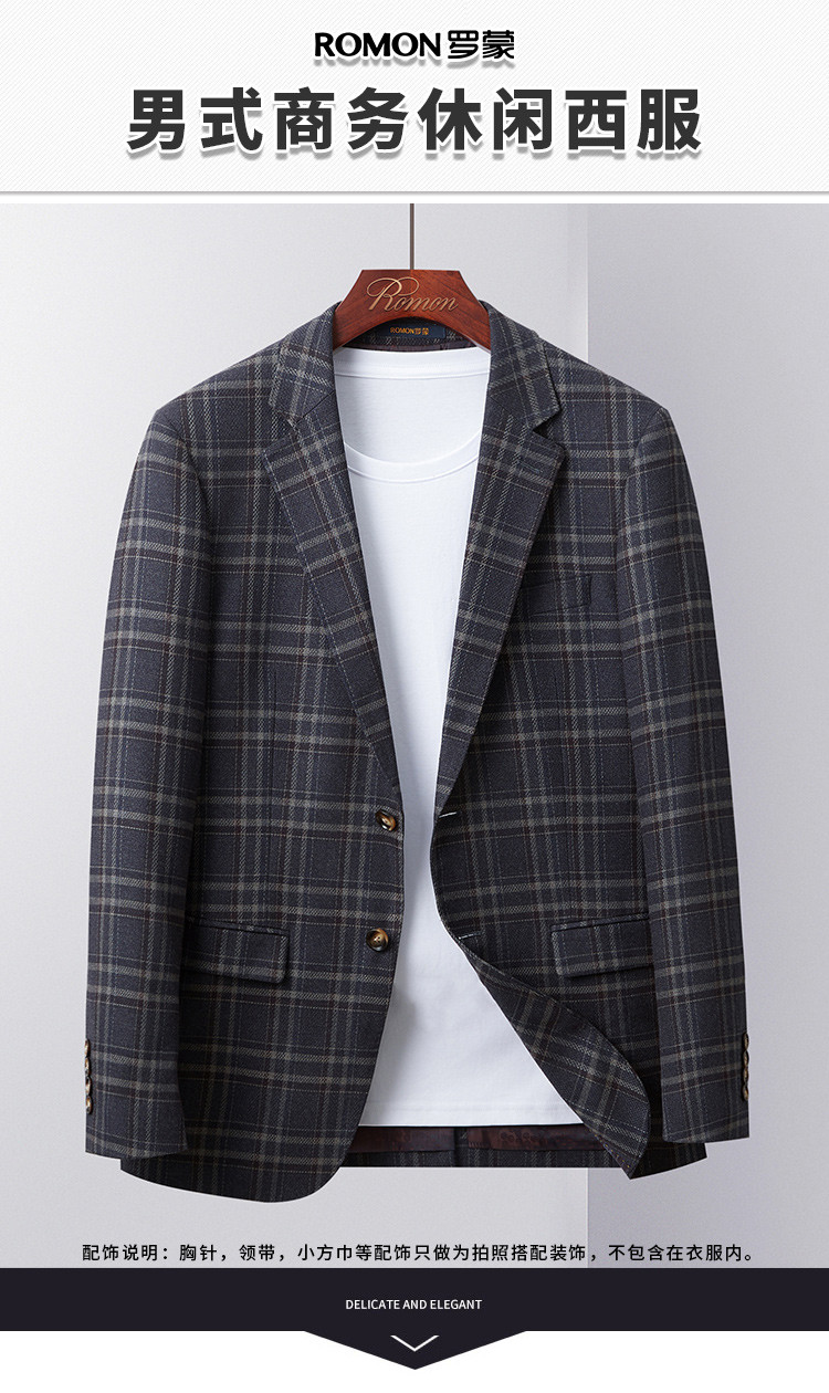 【亲肤透气】罗蒙男士西服休闲商务时尚格纹通勤百搭单西西装外套男