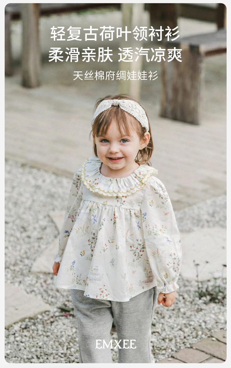 【宝宝服饰】嫚熙童装儿童娃娃衫女宝春夏长袖T恤2026新款衬衫女童娃娃领上衣