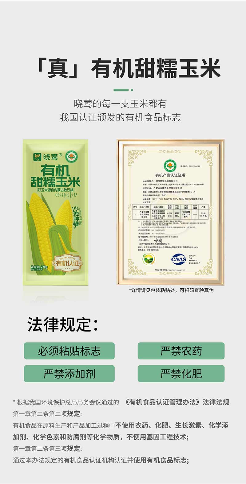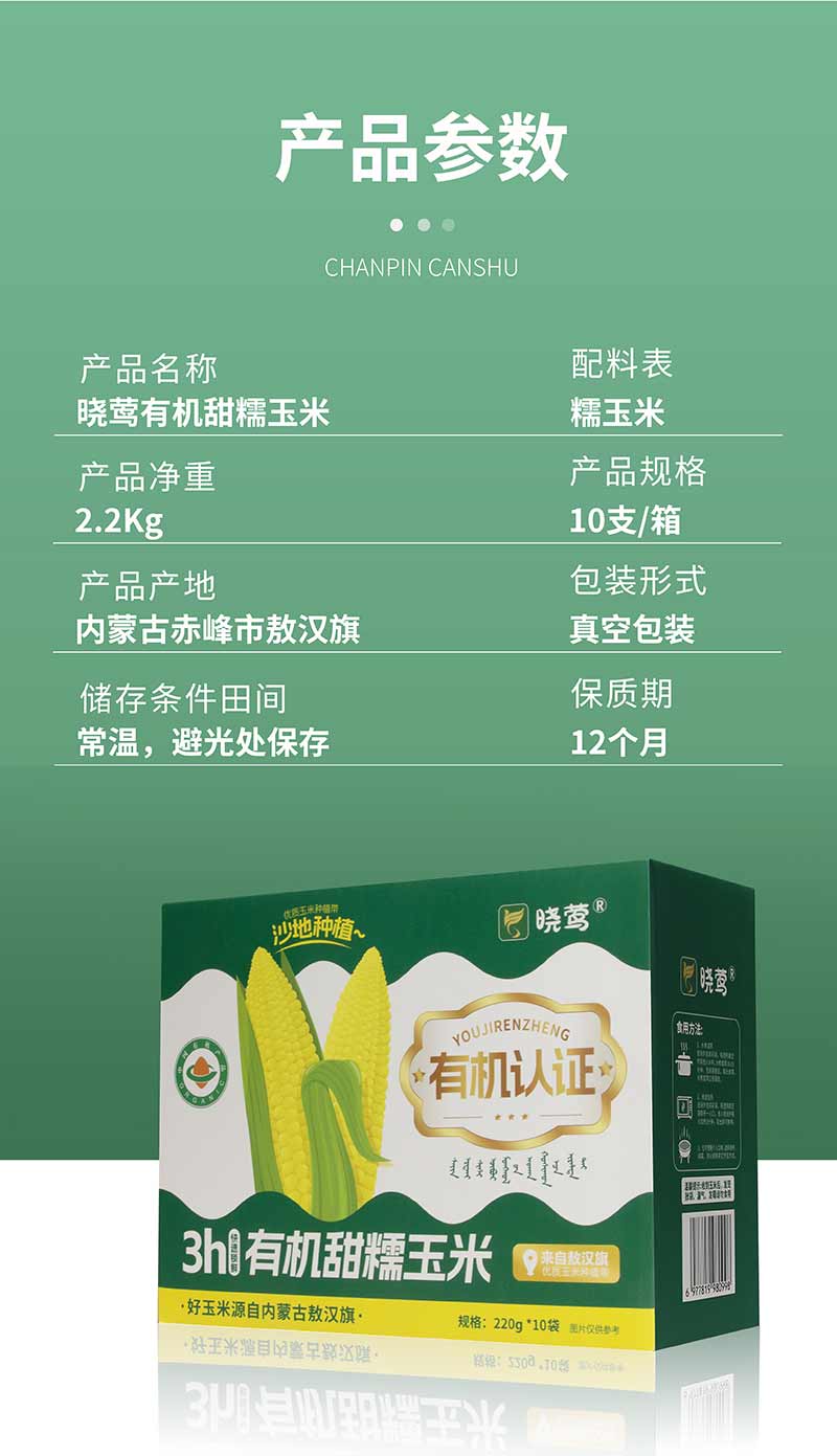 晓莺有机甜糯玉米220g*10穗/盒【XPTX】