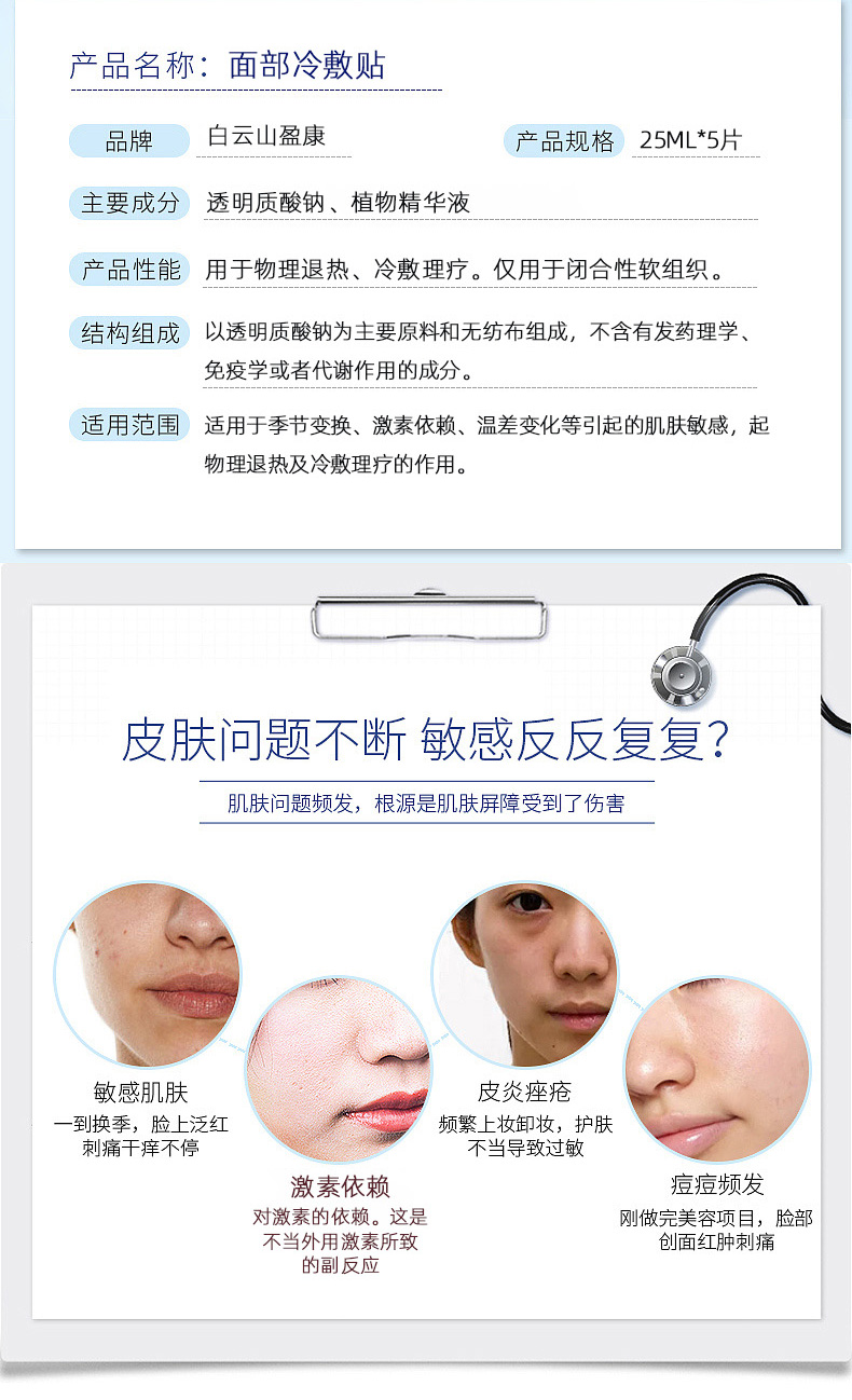 49.9元抢白云山冷敷面膜---补水保湿/晒伤修复(5片/盒)