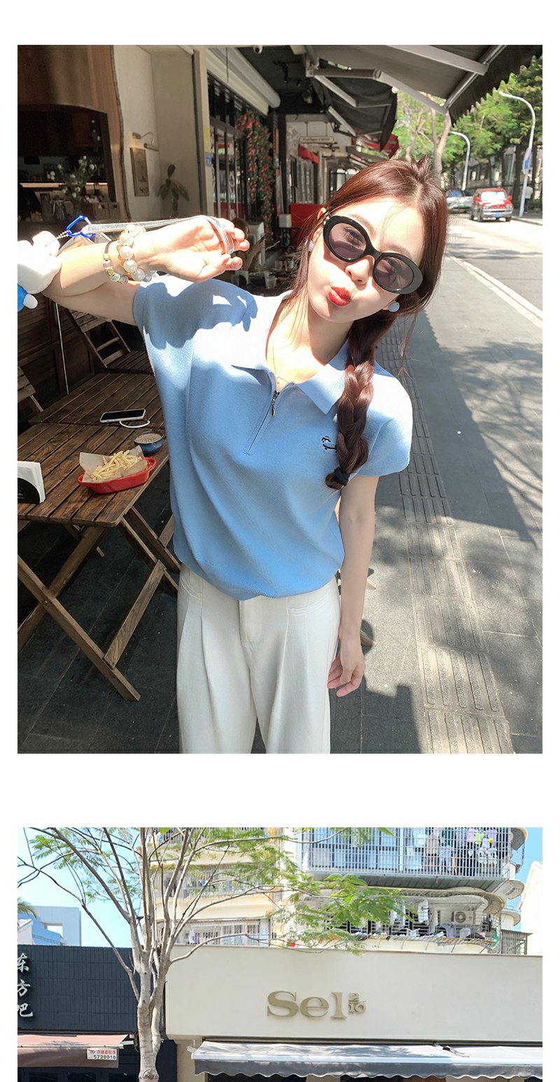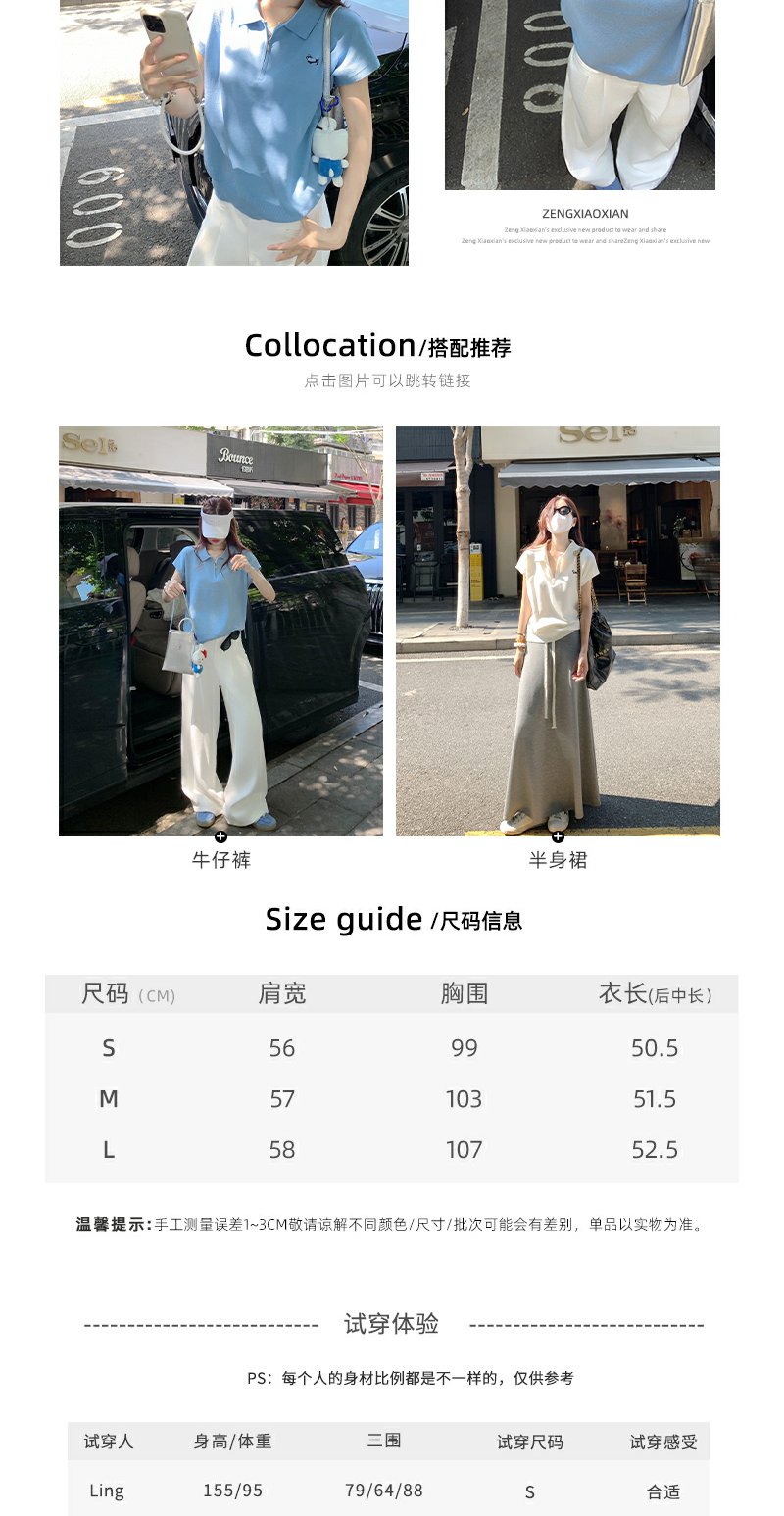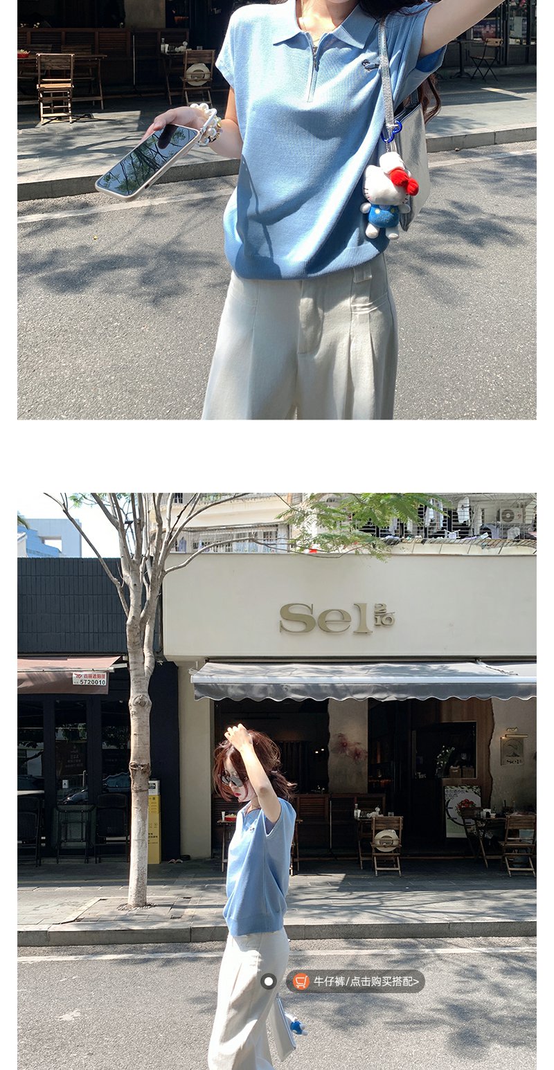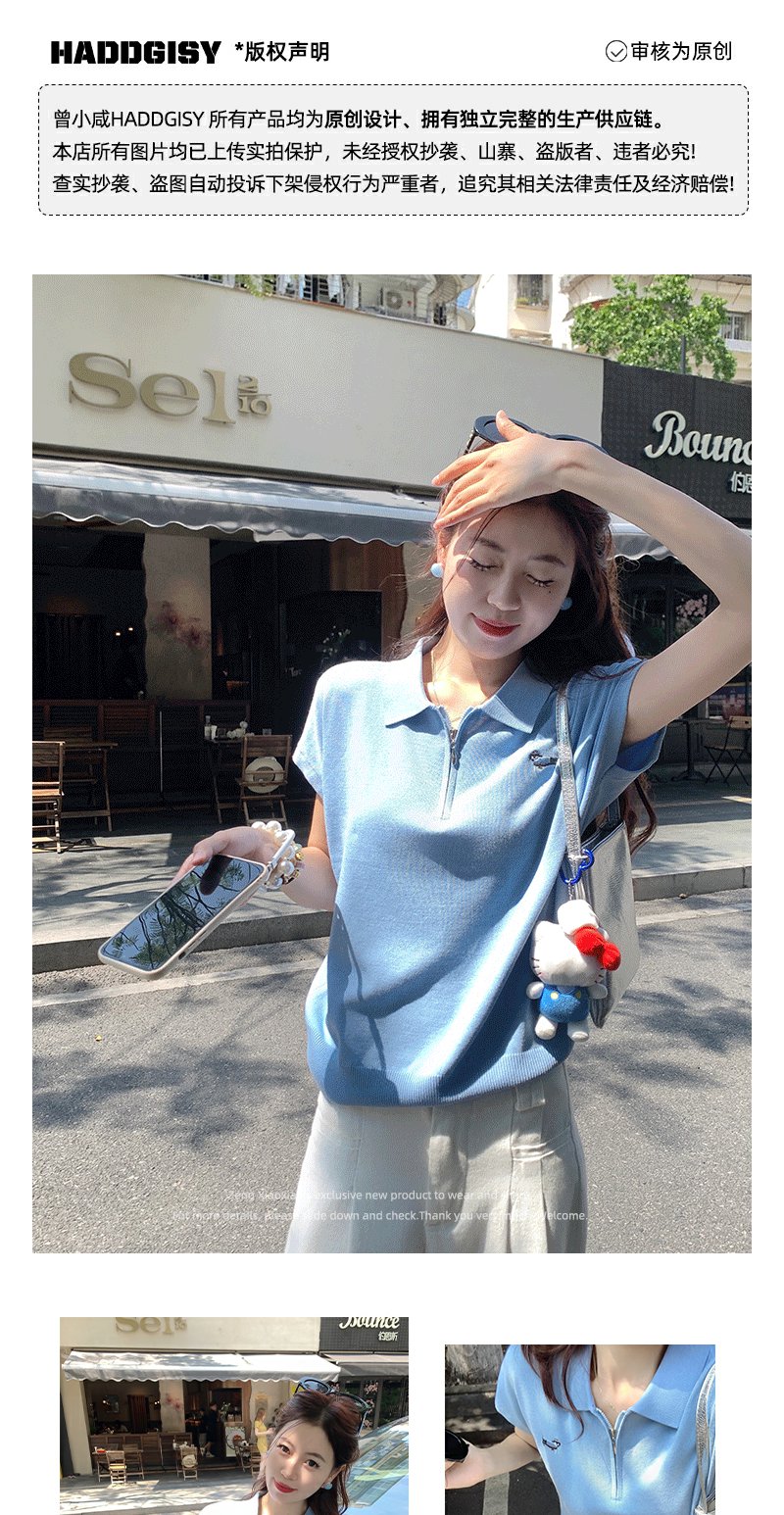 <曾小咸推荐>正肩针织衫Polo领上衣T恤