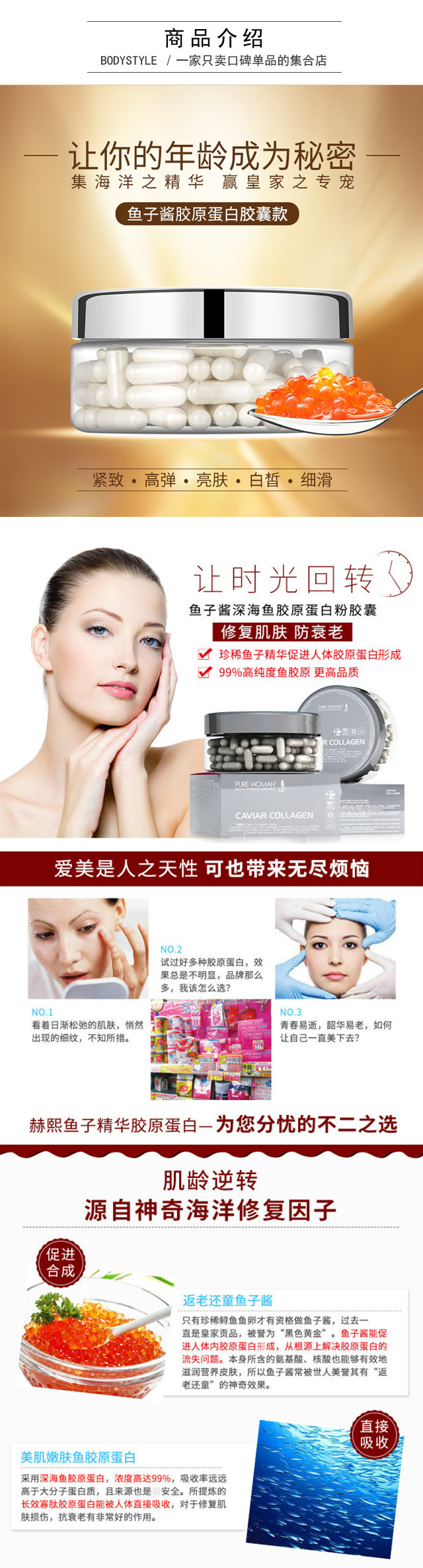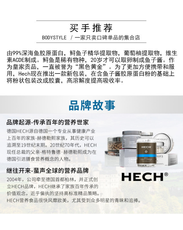 【限时折扣】HECH鱼子酱深海鱼胶原蛋白肽粉胶囊120粒