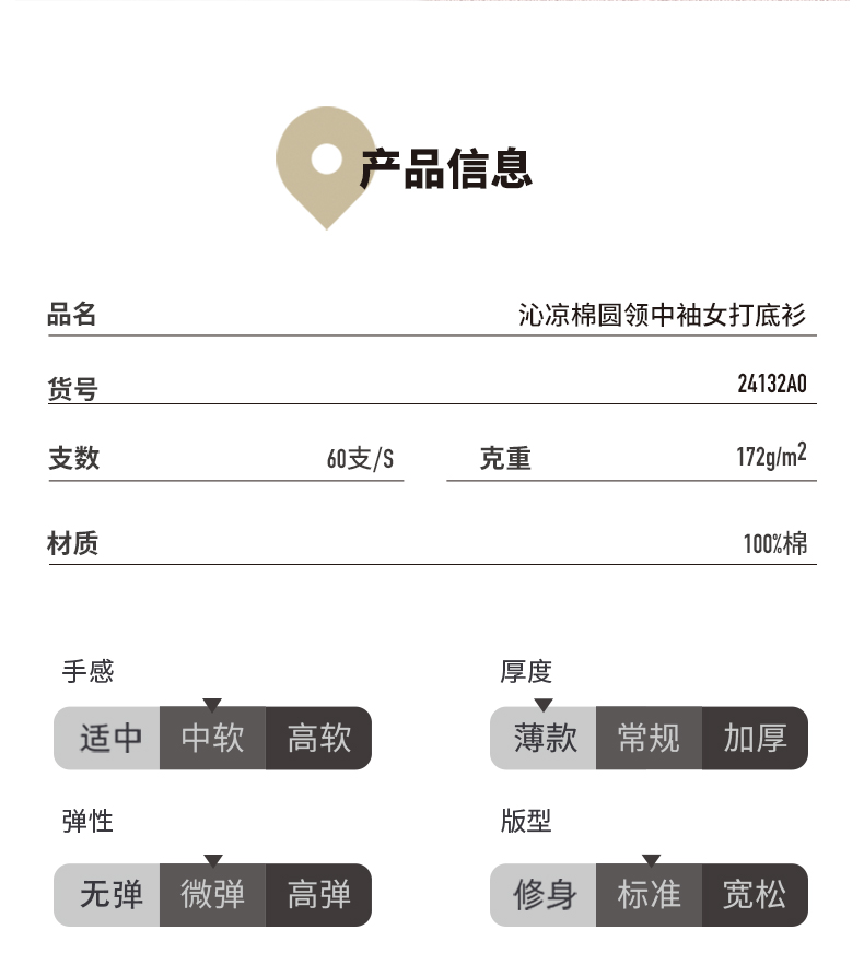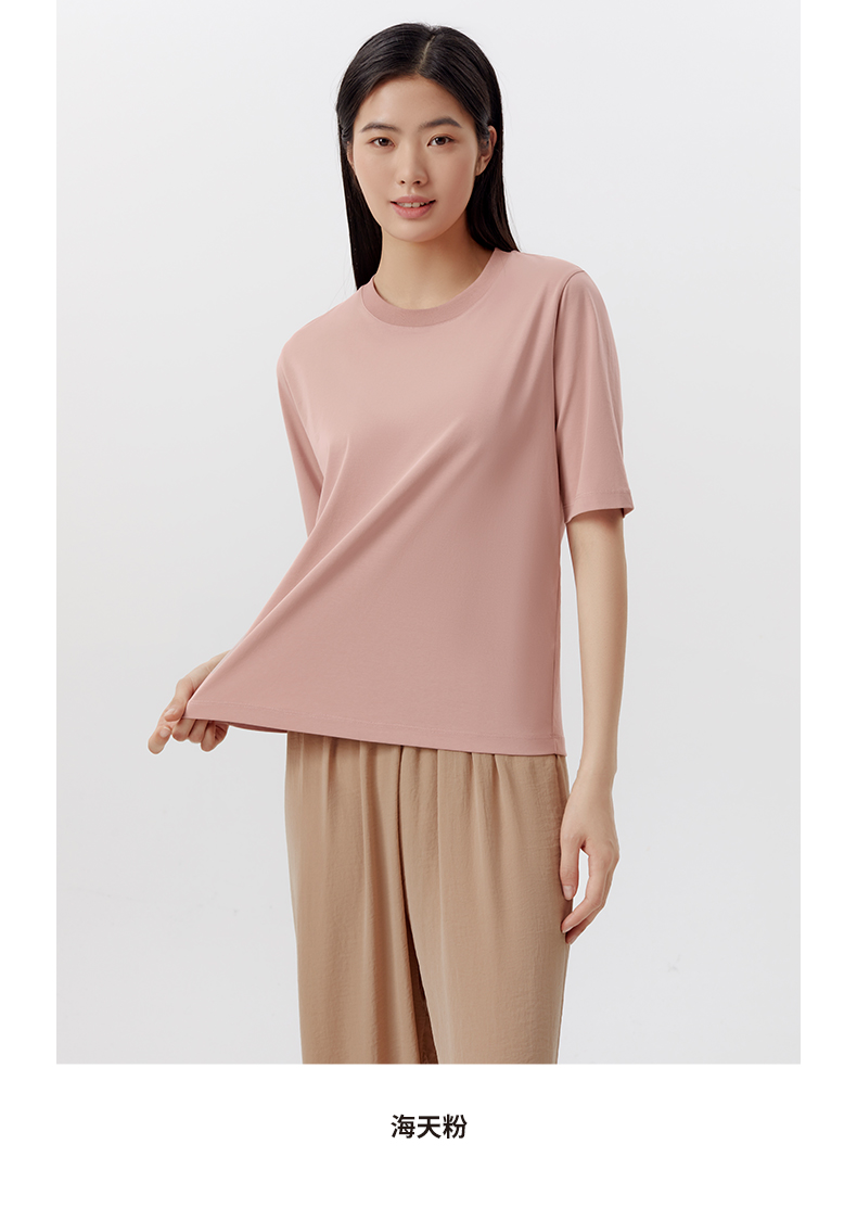 Threegun三枪 【沁凉棉】圆领女士中袖上衣打底衫-24132A011