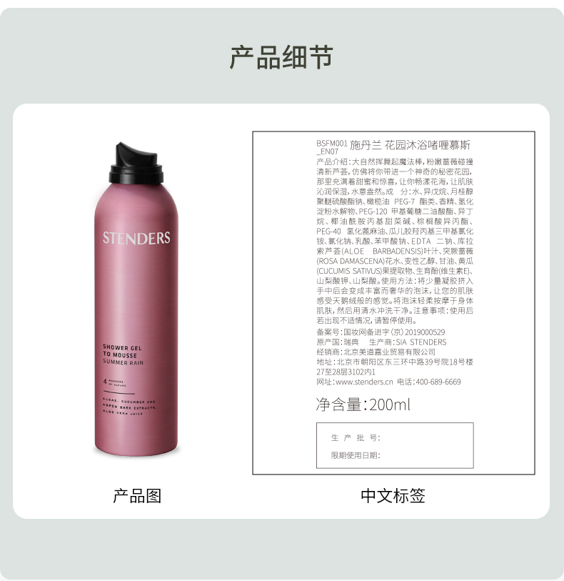 施丹兰(STENDERS)慕斯沐浴露200ml沐浴啫喱滋润肤泡泡清洁持久留香 心选到家