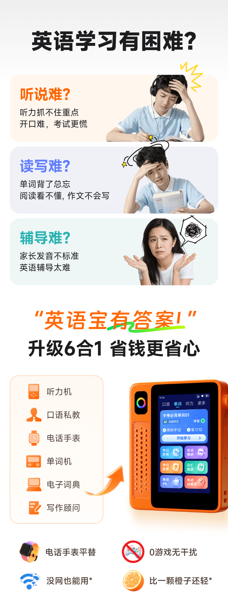 【供】科大讯飞AI英语宝PRO 能通话的英语学习机 记单词 练听力 口语对话 查词 定位 打电话