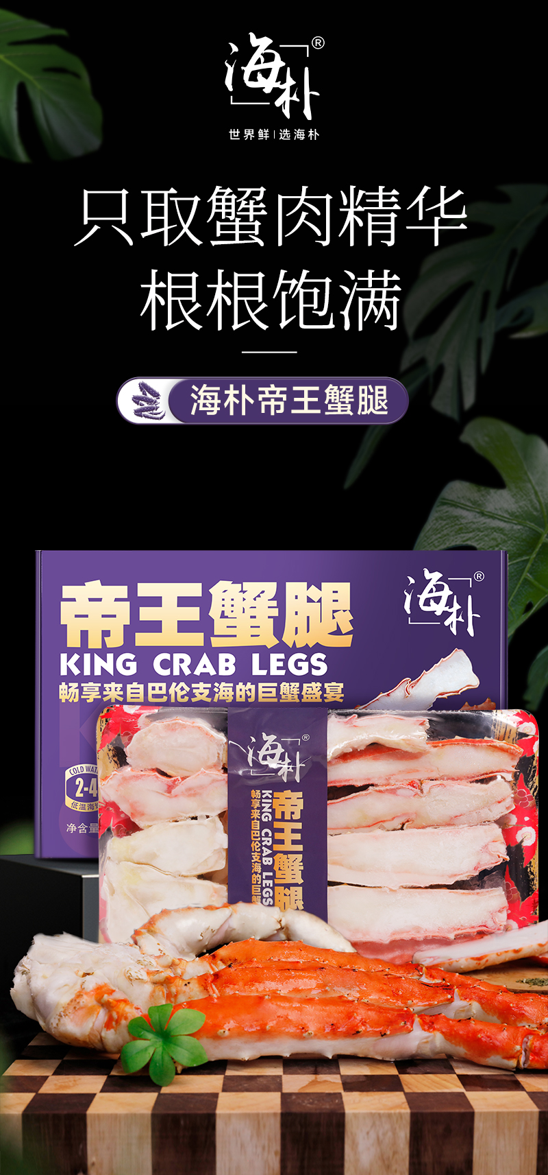 优选丨海朴冷冻帝王蟹腿750g鲜香美味解冻即食礼盒装