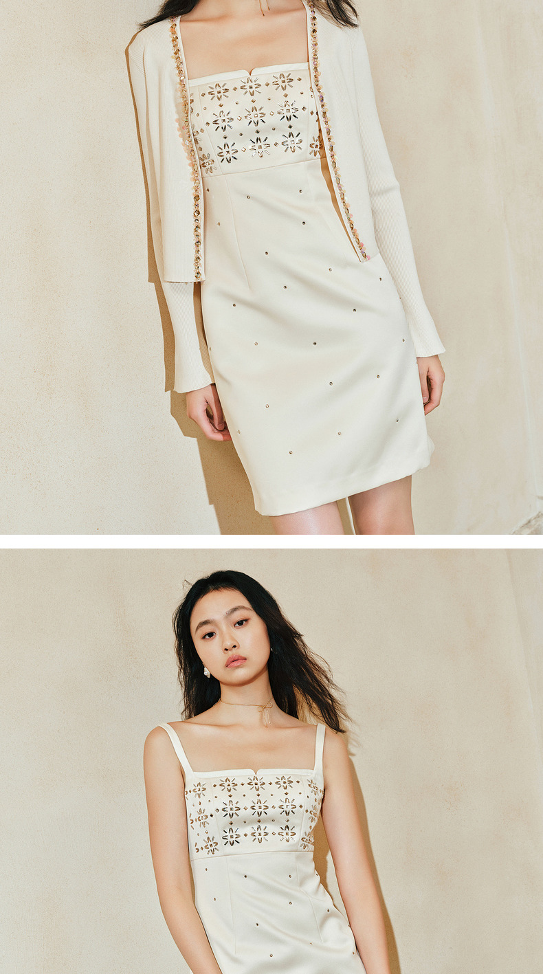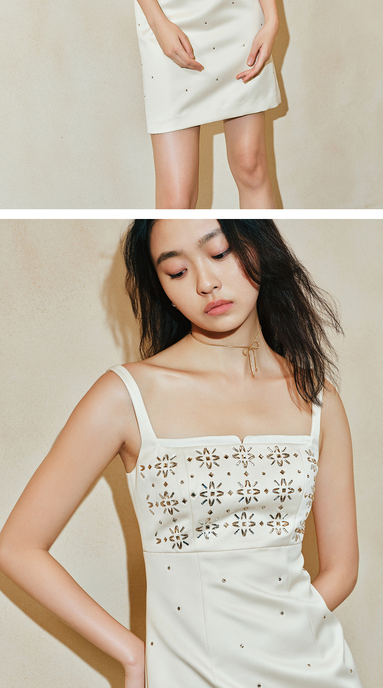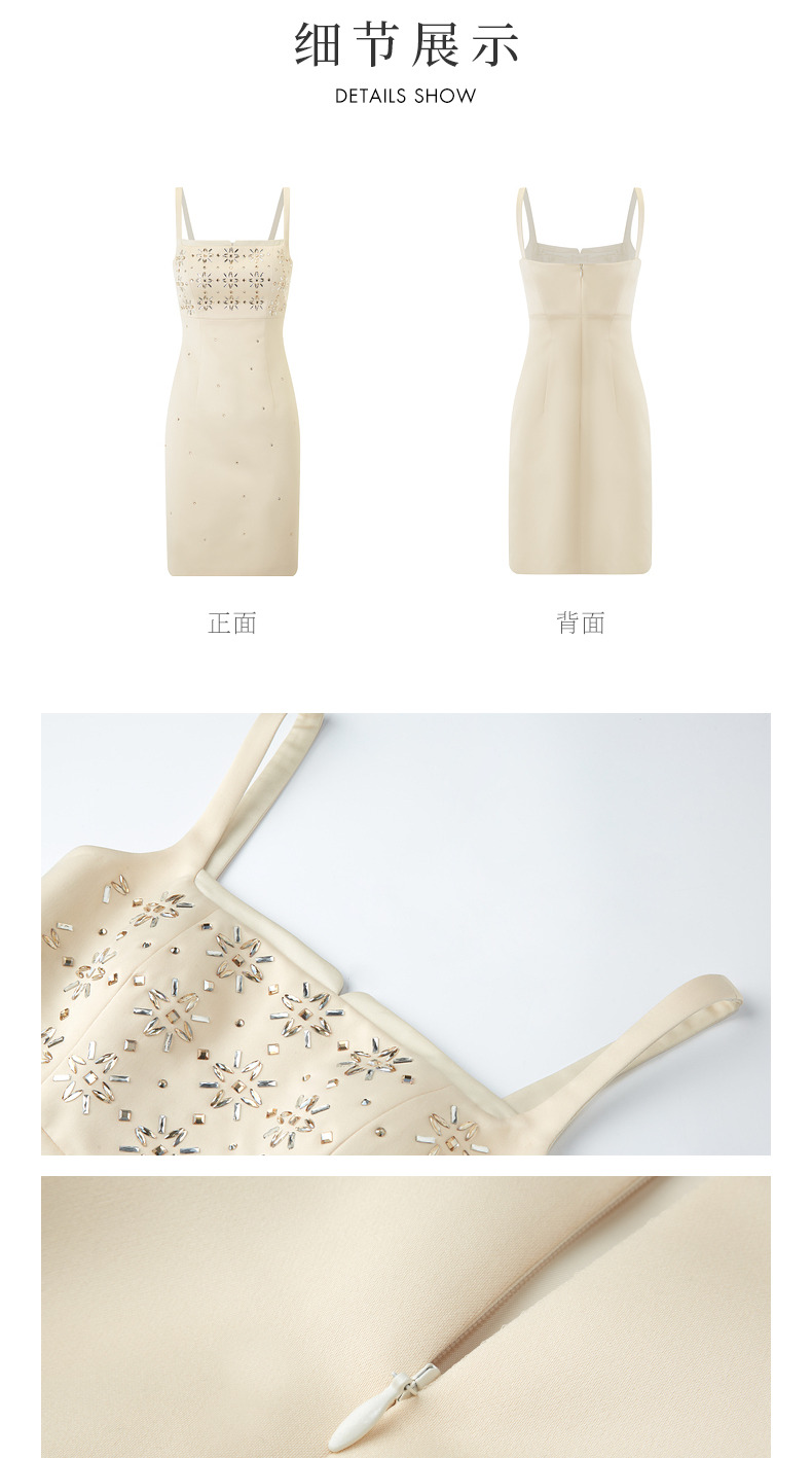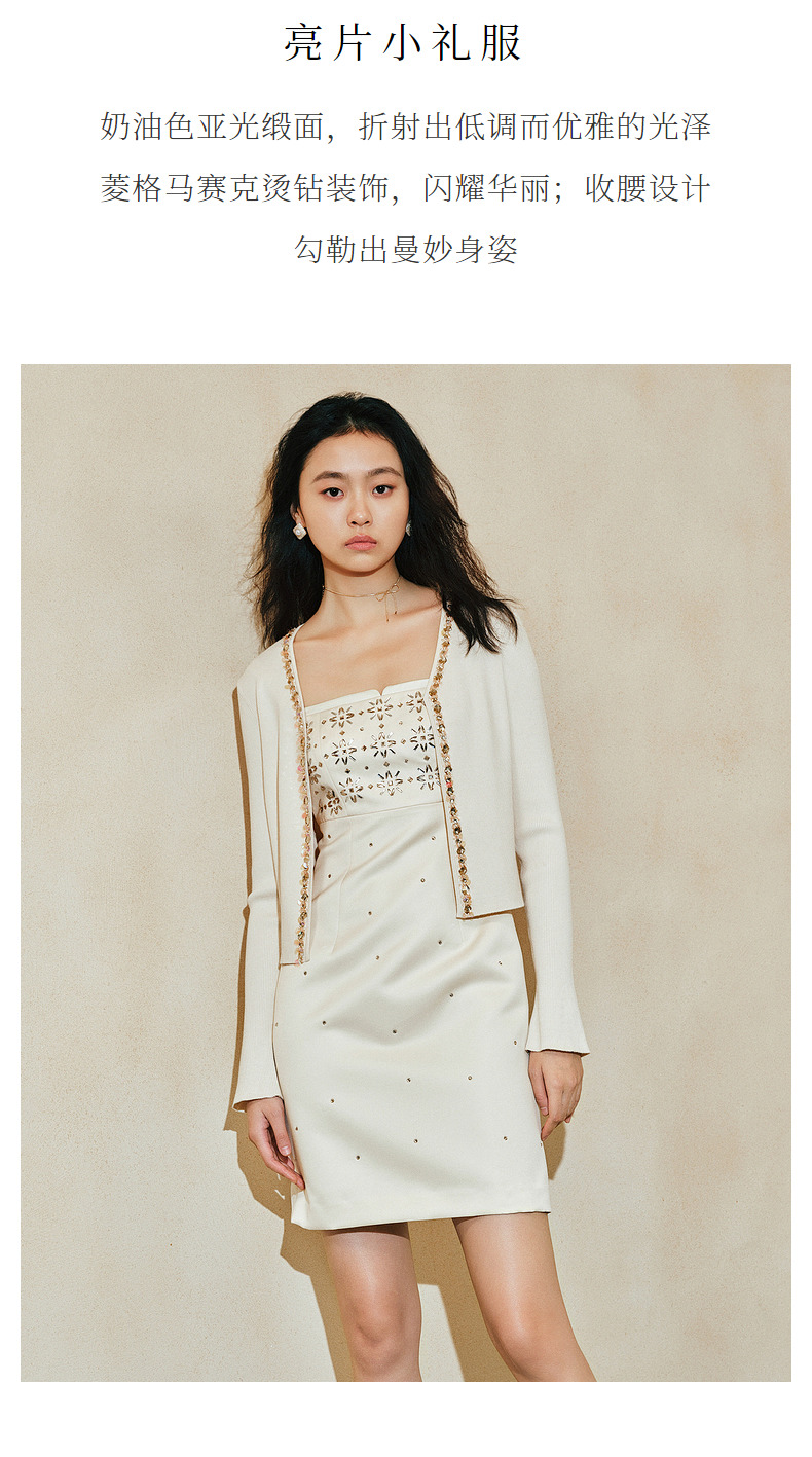 玛克门店发货:MAXRIENY烫钻缎面连衣裙晚会宴会穿搭(货号:MC85DR064)