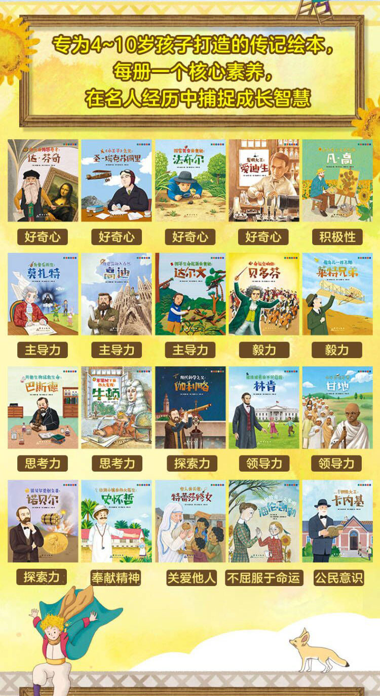精选20位影响世界的名人,涵盖文学、艺术、经济、科学、社会等领域,用有趣的故事帮助孩子提升成长必备素质。