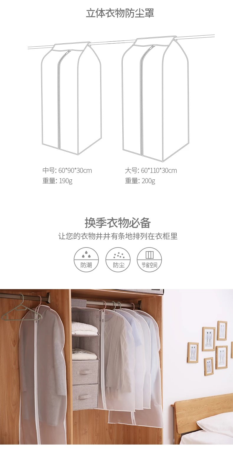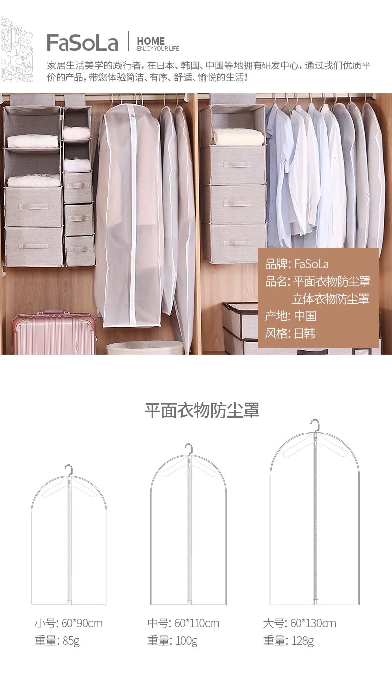 FaSoLa可水洗衣服防尘罩透明挂式家用收纳袋西服挂衣袋衣物防尘袋塑料套