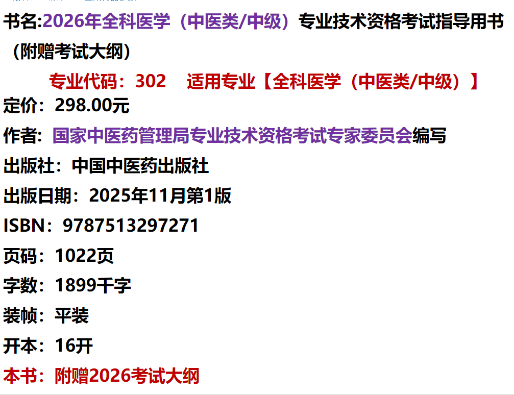 2026年全科医学(中医类/中级)专业技术资格考试指导用书 代码302国家中医药管理局专业技术资格考试专家委员会中国中医药出版社