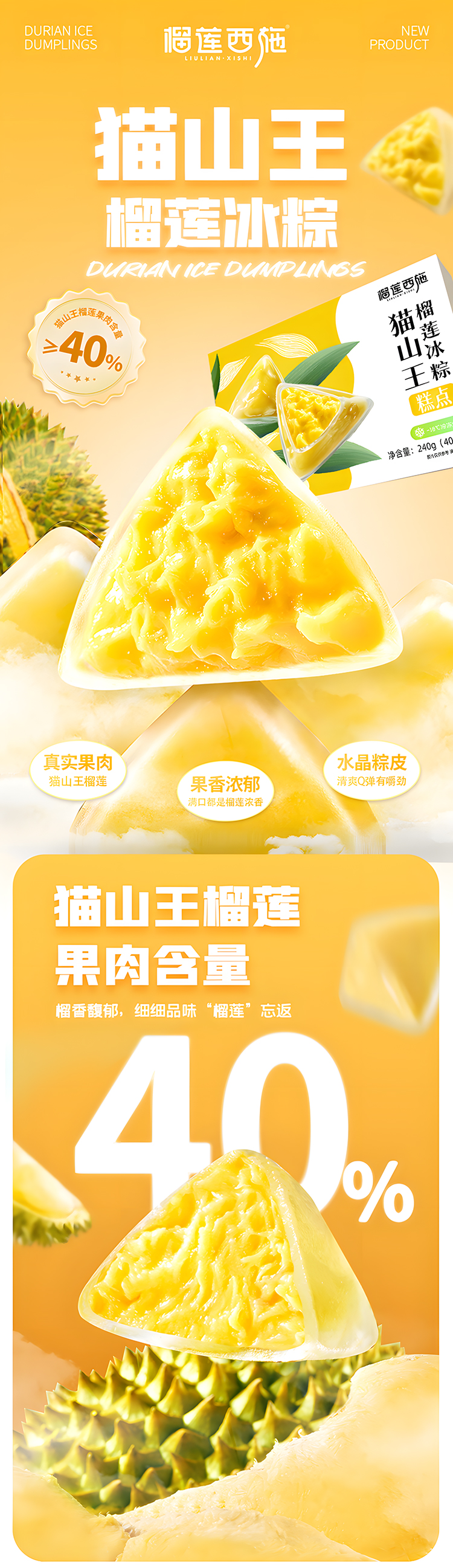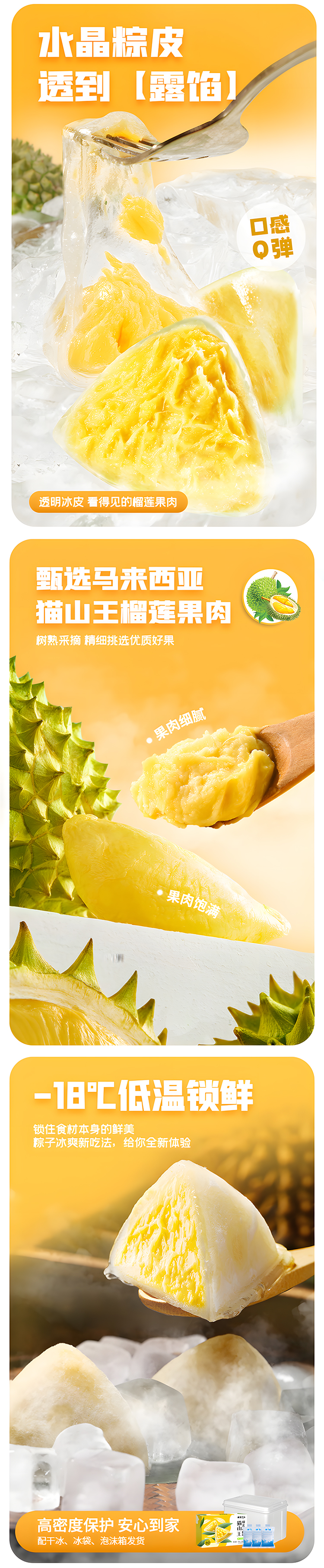 【臻选甜品满嘴榴莲香】真实榴莲果肉,榴莲冰粽,一口爆浆,冰爽解暑,温阳补益促食欲