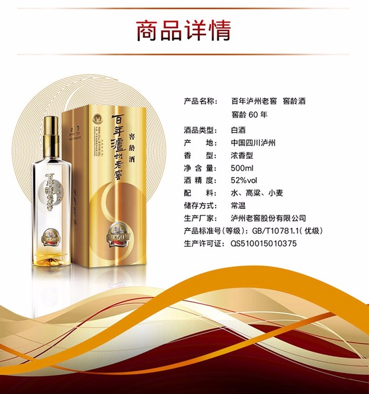泸州老窖窖龄酒 浓香型白酒 窖龄60年52度500ml*6瓶 整箱装