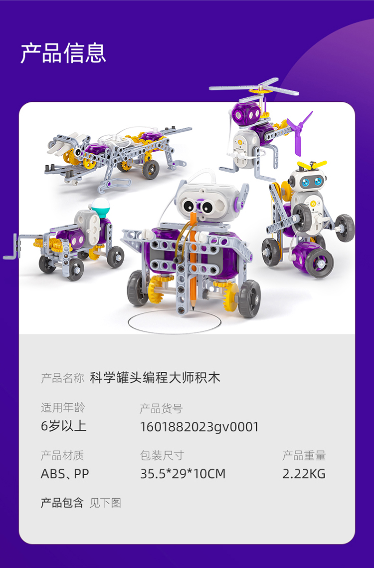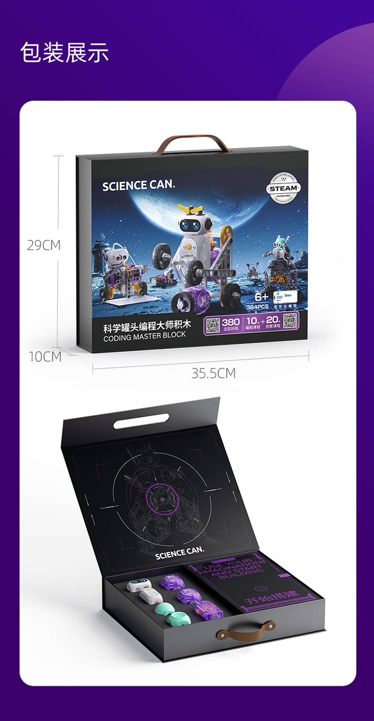 优选丨【0门槛学习编程 20+拼搭步骤】科学罐头编程大师积木 大模块构建 简易拼搭