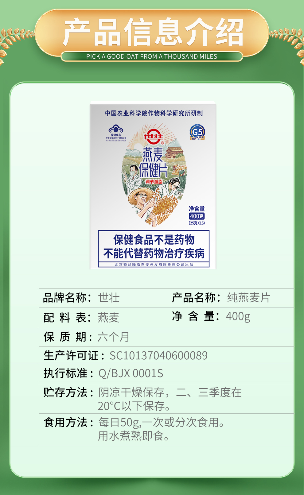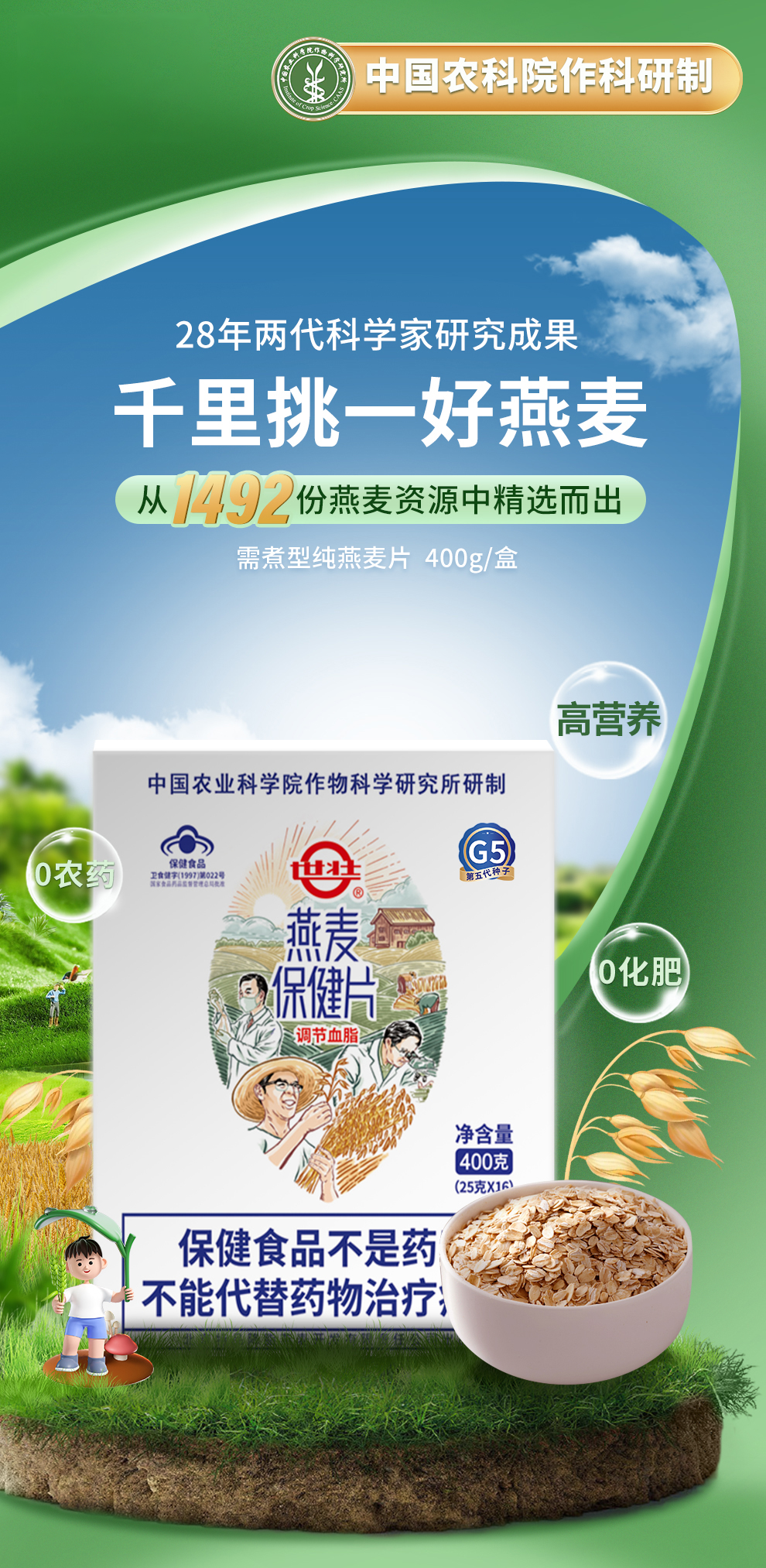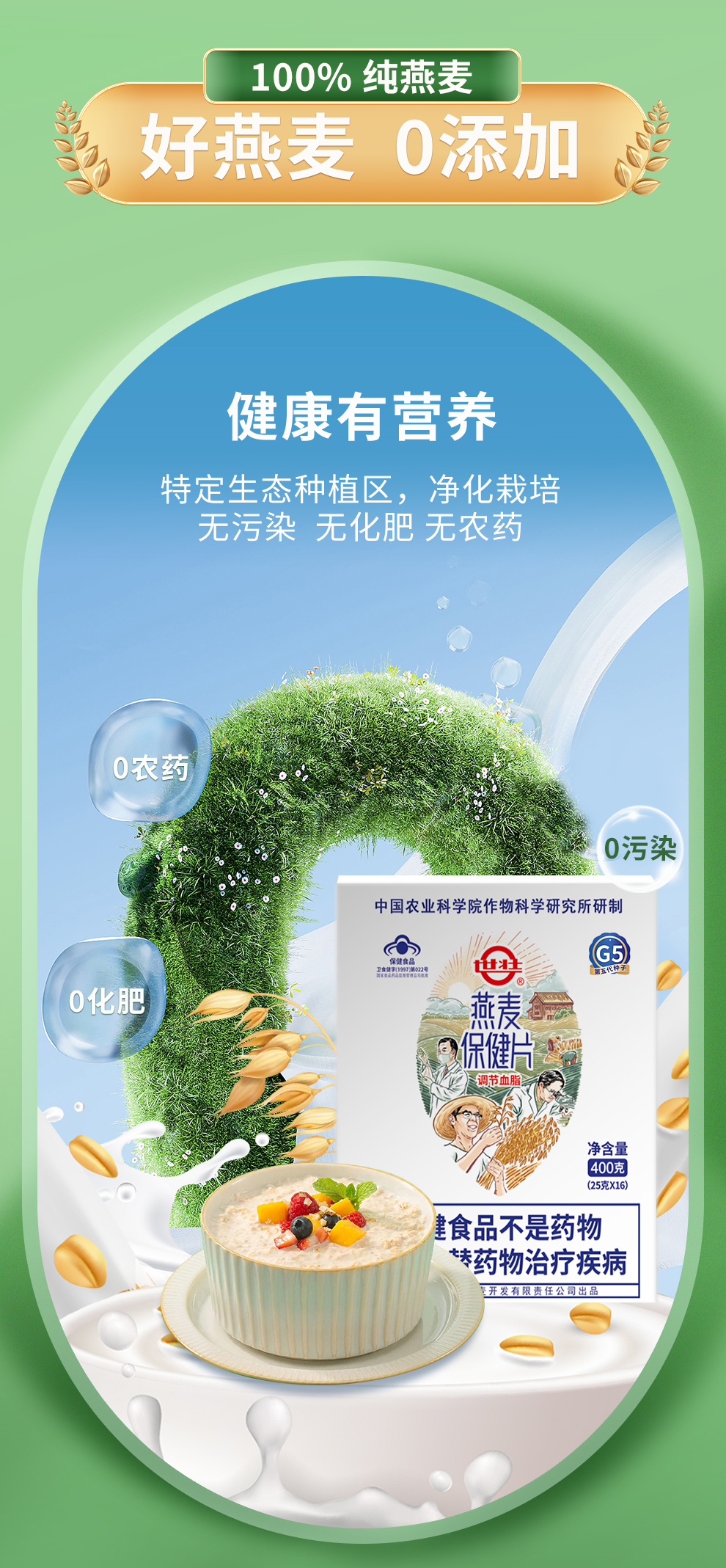 【世壮保健燕麦片】配料表只有纯燕麦 滑软有嚼劲 农科院研发品种 蛋白质/β-葡聚糖含量更高