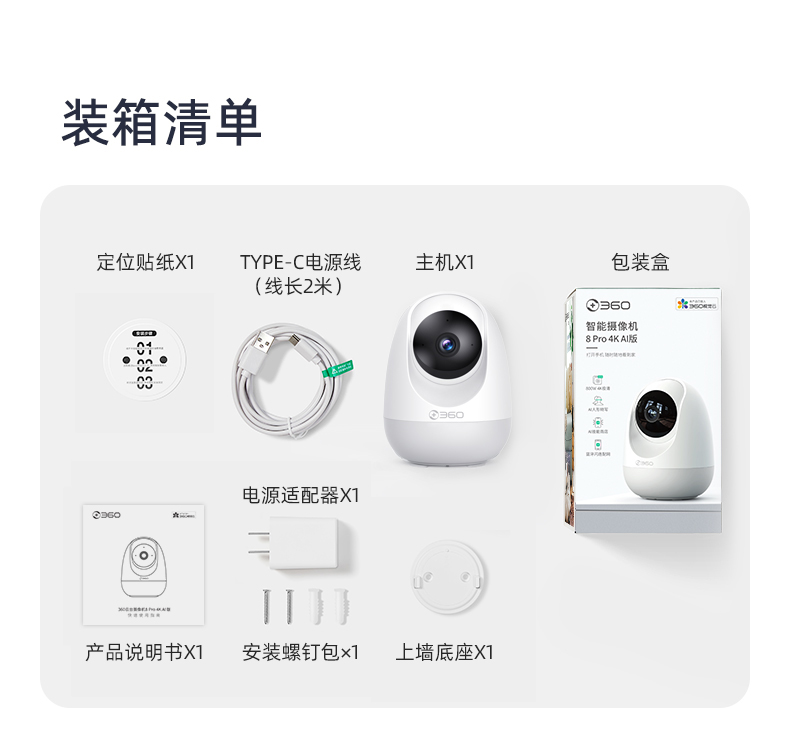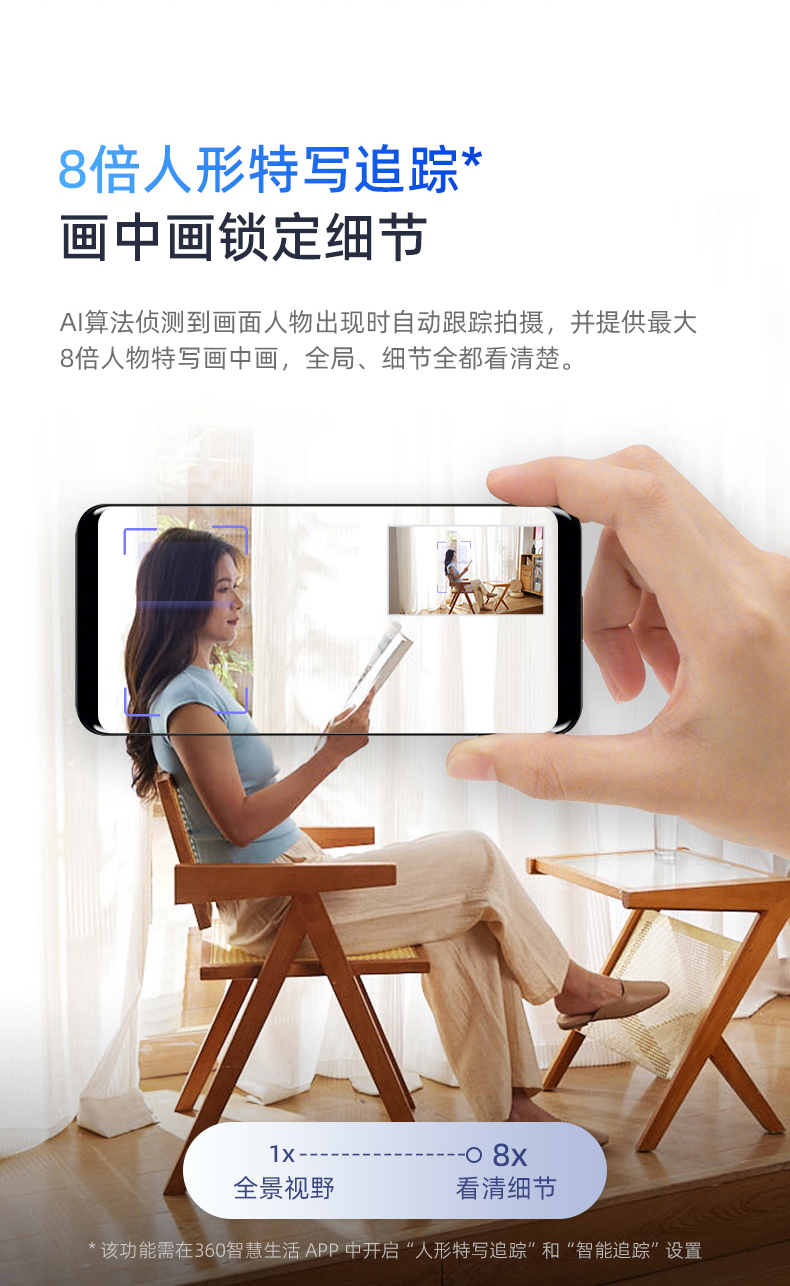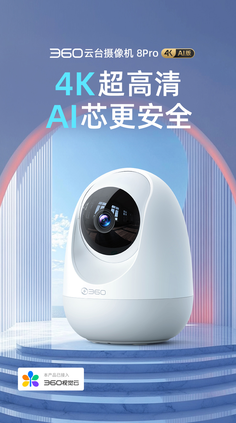 【超值】360云台摄像机8Pro4K-AI 8倍超级变焦 4K超清画质 高保真独立音腔 蓝牙闪连配网 手势呼叫通话 镜头隐私遮蔽