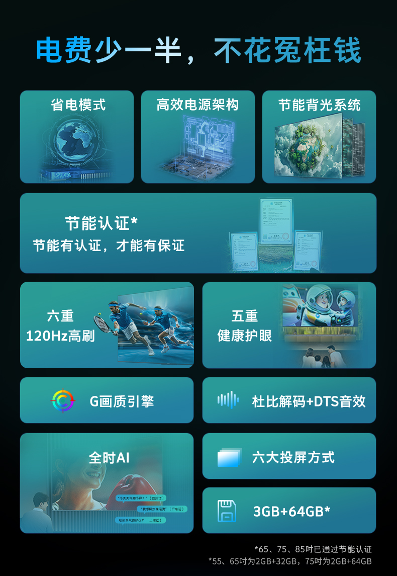 创维65G3E/75G3E 健康护眼六重高刷全时语音 4K超高清
