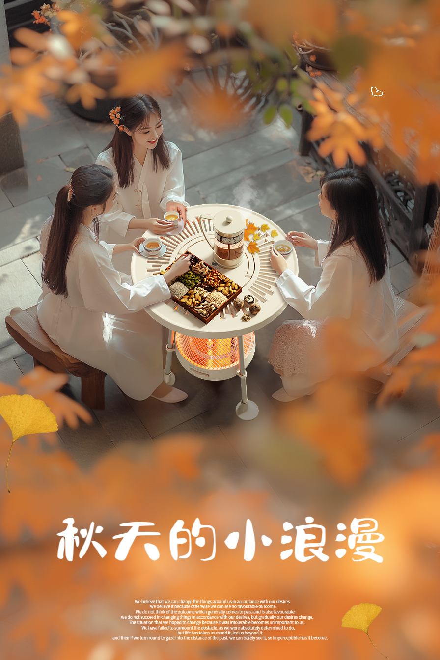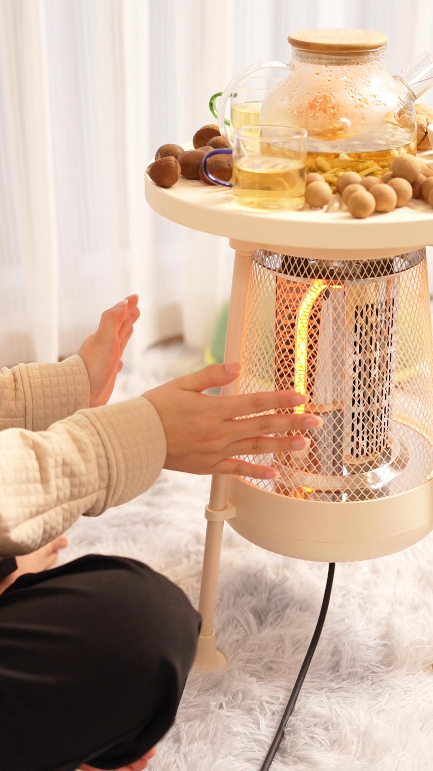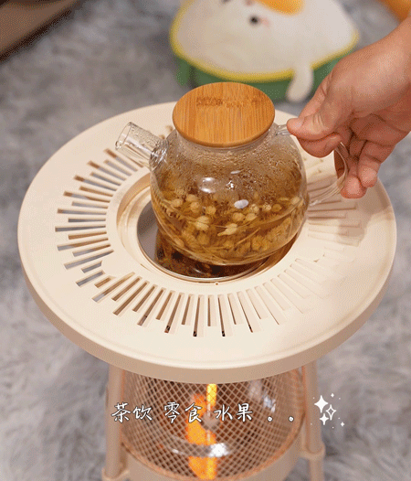 它既是取暖器也可以围炉温茶,在桌上摆放零食、水果、点心等美食,然后就尽情和与朋友、家人磕瓜子聊天啦。