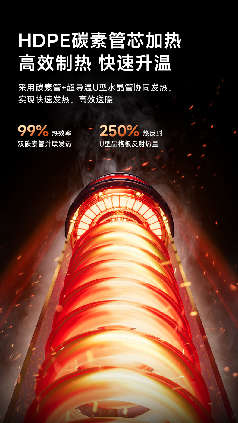 相比传统取暖设备,新款碳纤维发热转换快,电热转化率惊人地高达98%!!既温暖了冬日,又节约了电费开支~