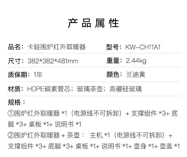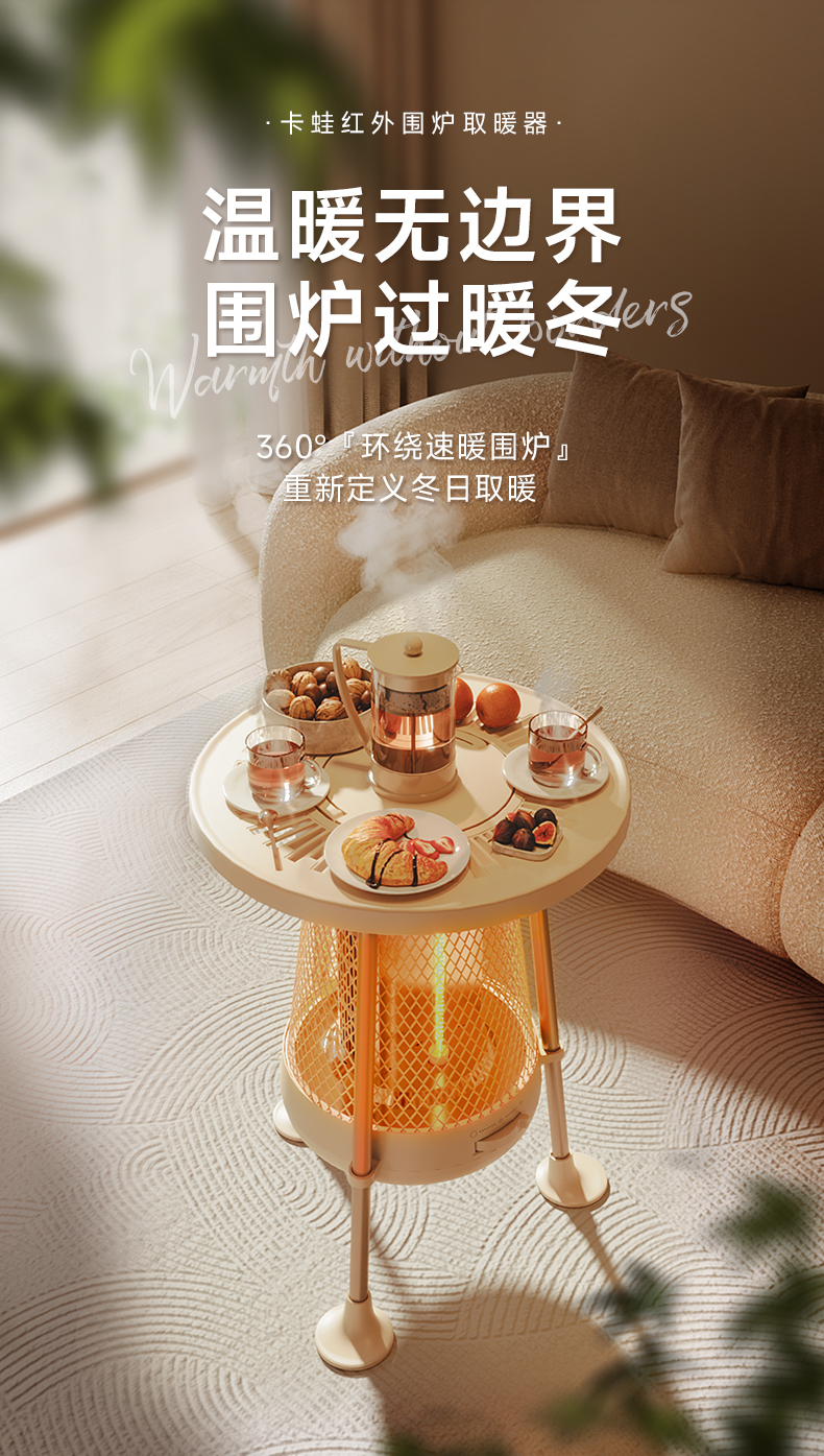 卡蛙围炉红外取暖器, 能让一家人围在一起的取暖器,3秒速热,暖人、暖茶、暖物又暖心 [72小时发货]