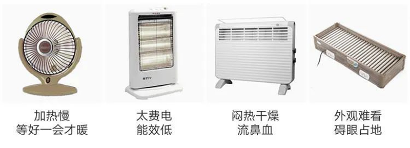 没有暖气,这种小太阳取暖器便成了刚需。但说实话,它们都有加热慢、费电、干燥等很多不爽: