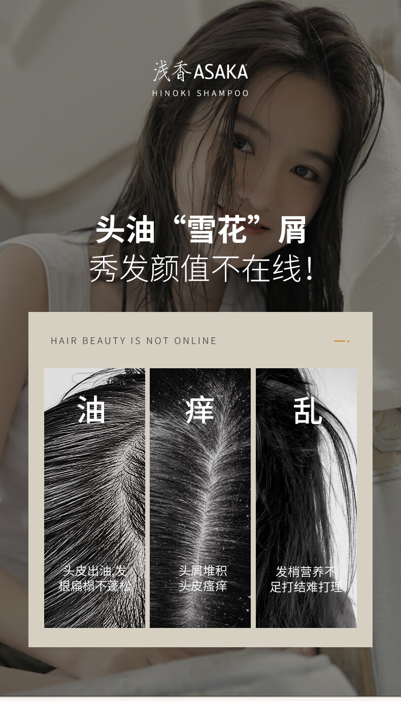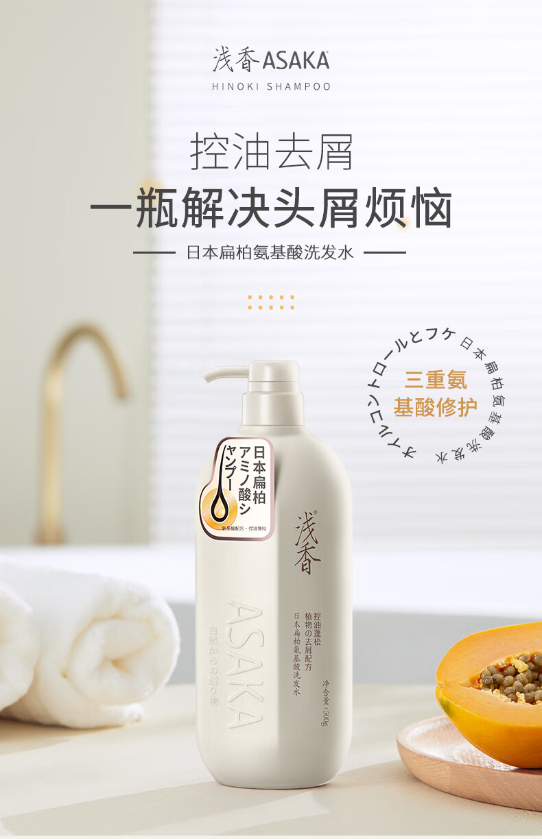 浅香(ASAKA)洗发水 日本晚樱扁柏香榧去屑控油氨基酸洗发乳 500ml/瓶