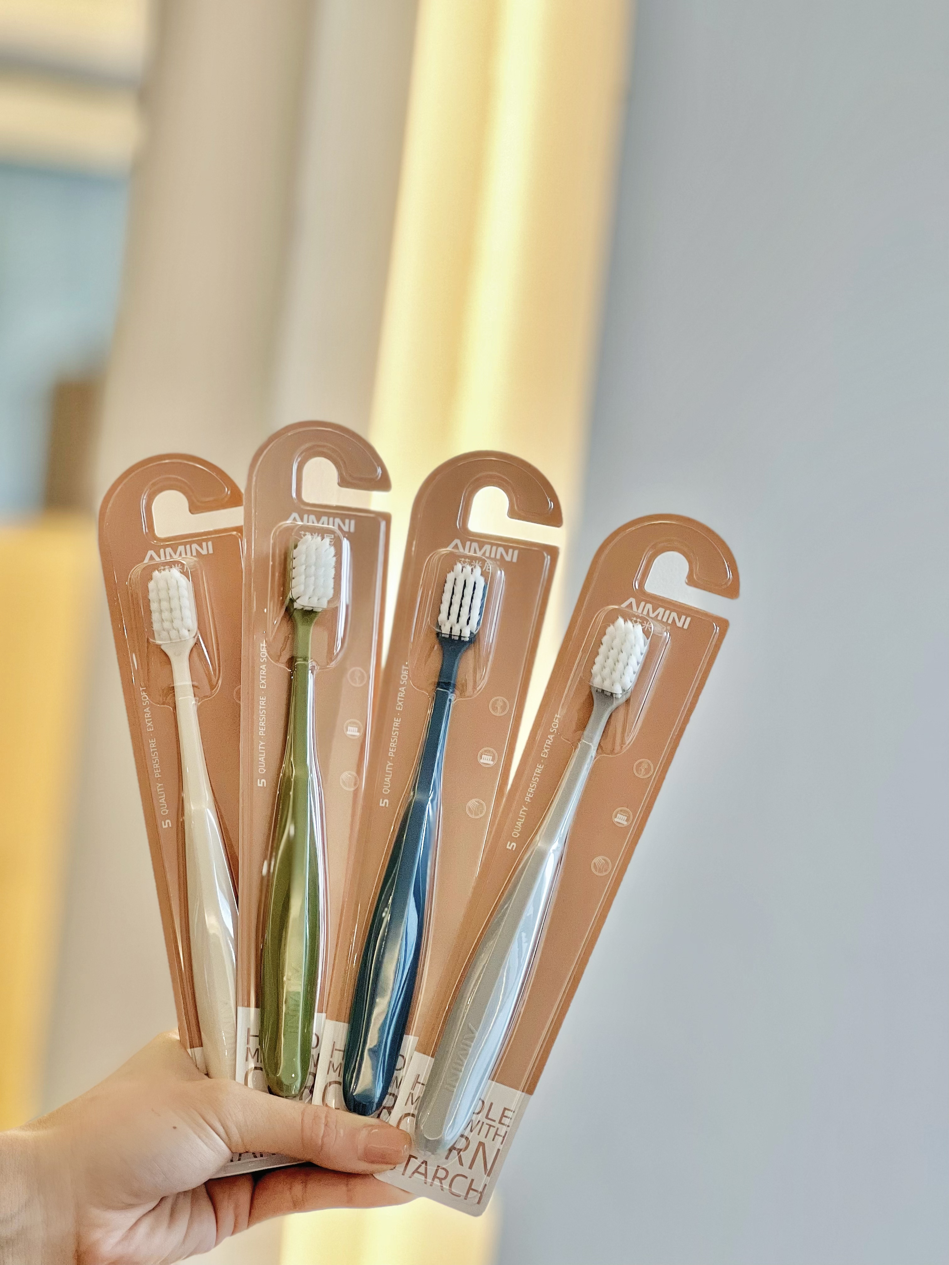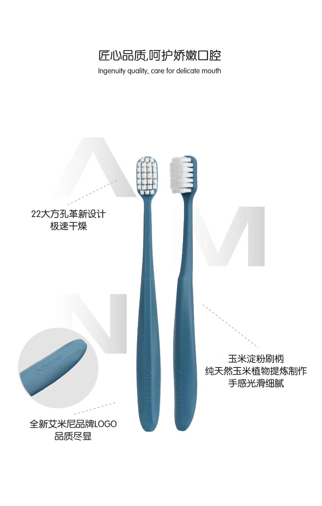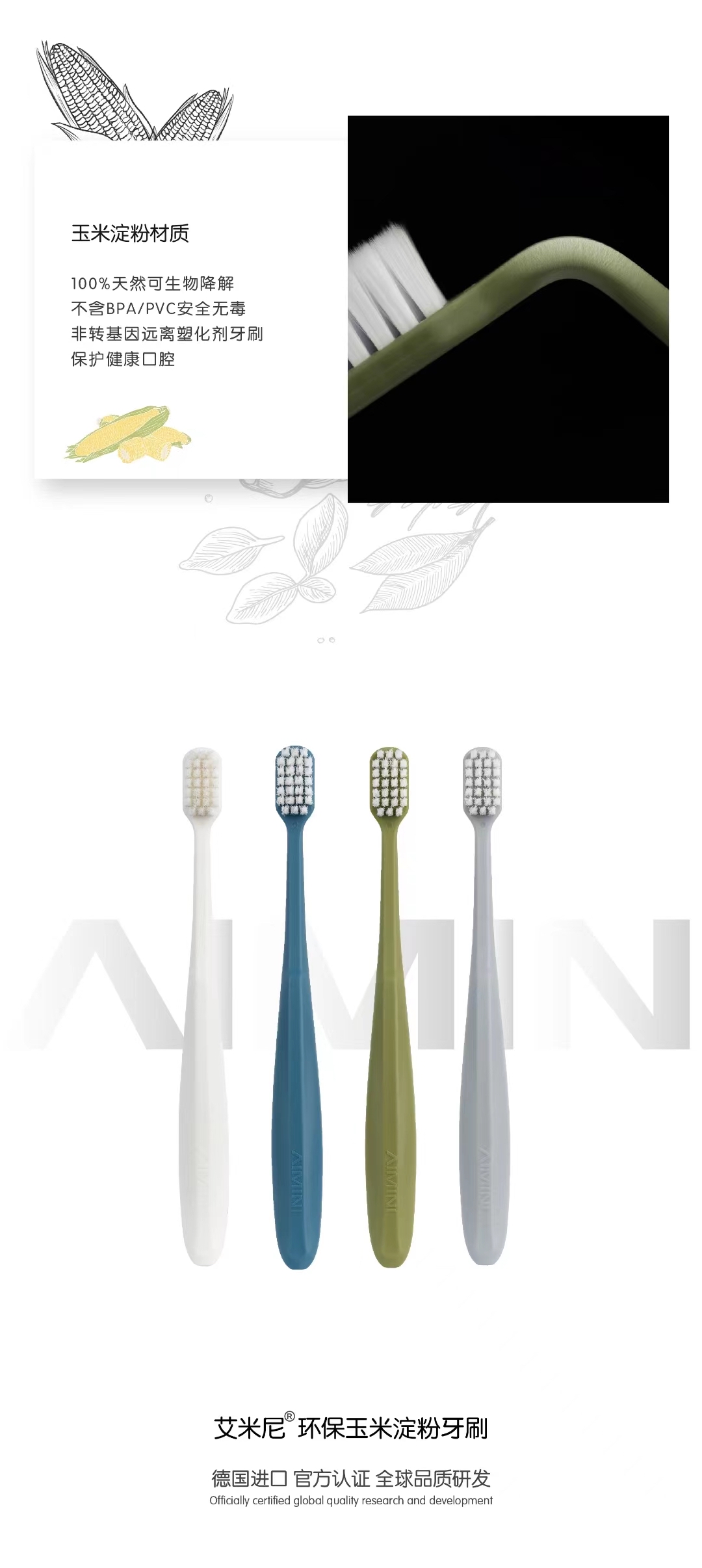 59.9到手16支‼️非转基因环保玉米淀粉牙刷【AIMINI艾米尼®玉米淀粉羽柔牙刷】非转基因玉米🌽德国进口0.1mm抑菌羽柔刷毛,刷牙也能成为spa级体验
