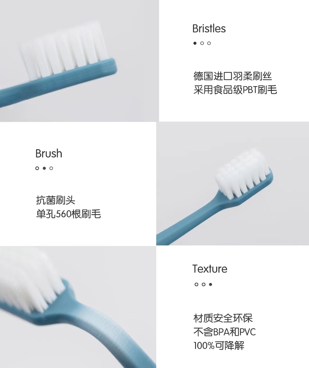 【产品材质】:刷毛:PBT;刷柄:PP+玉米淀粉