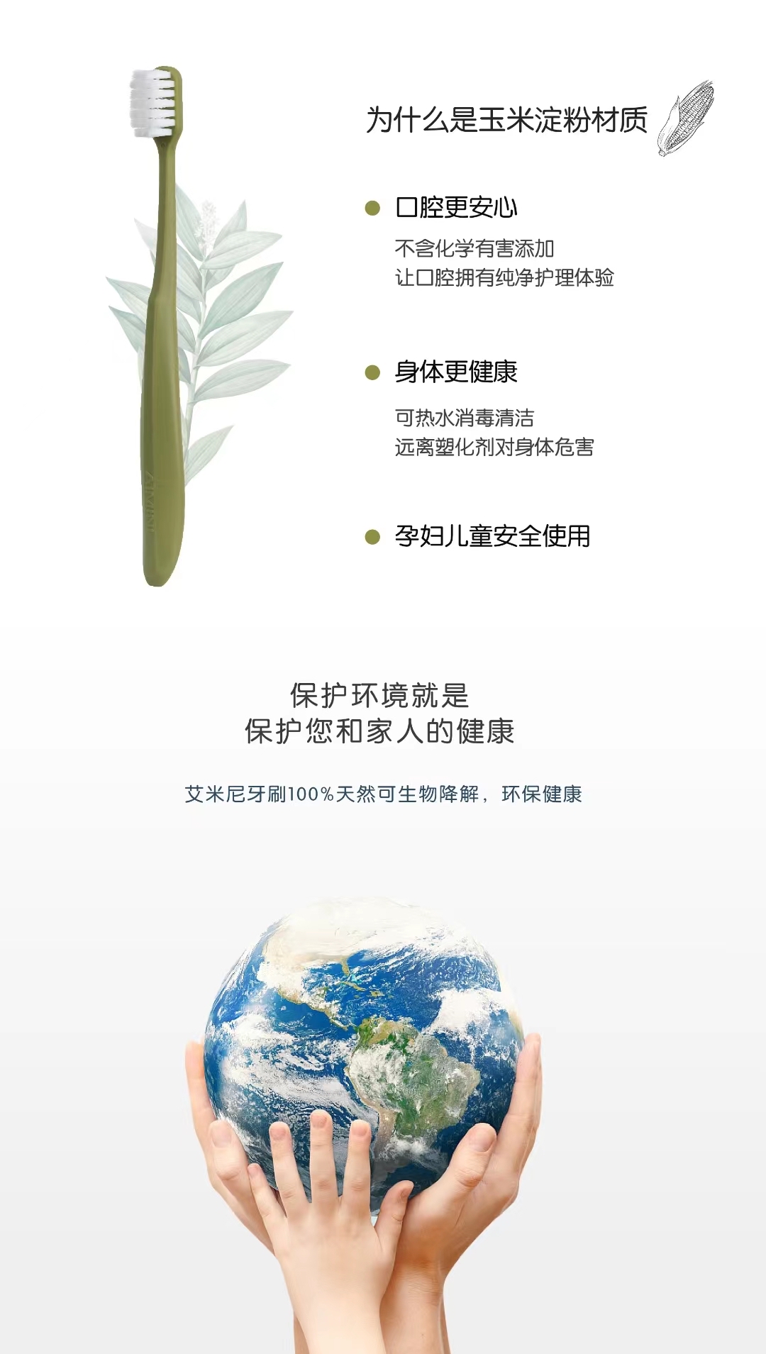 环保非转基因玉米淀粉材质,身体更健康,成功解锁人生第一支环保牙刷