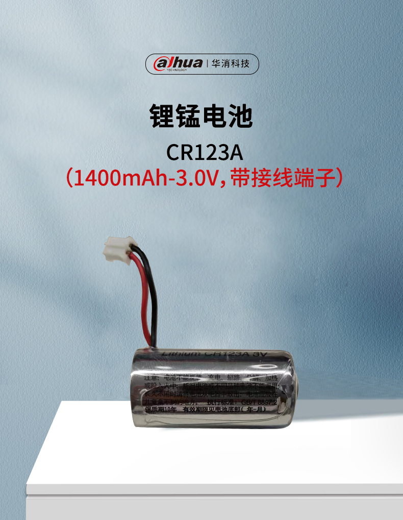 锂锰电池CR123A(1400mAh-3.0V,带接线端子)