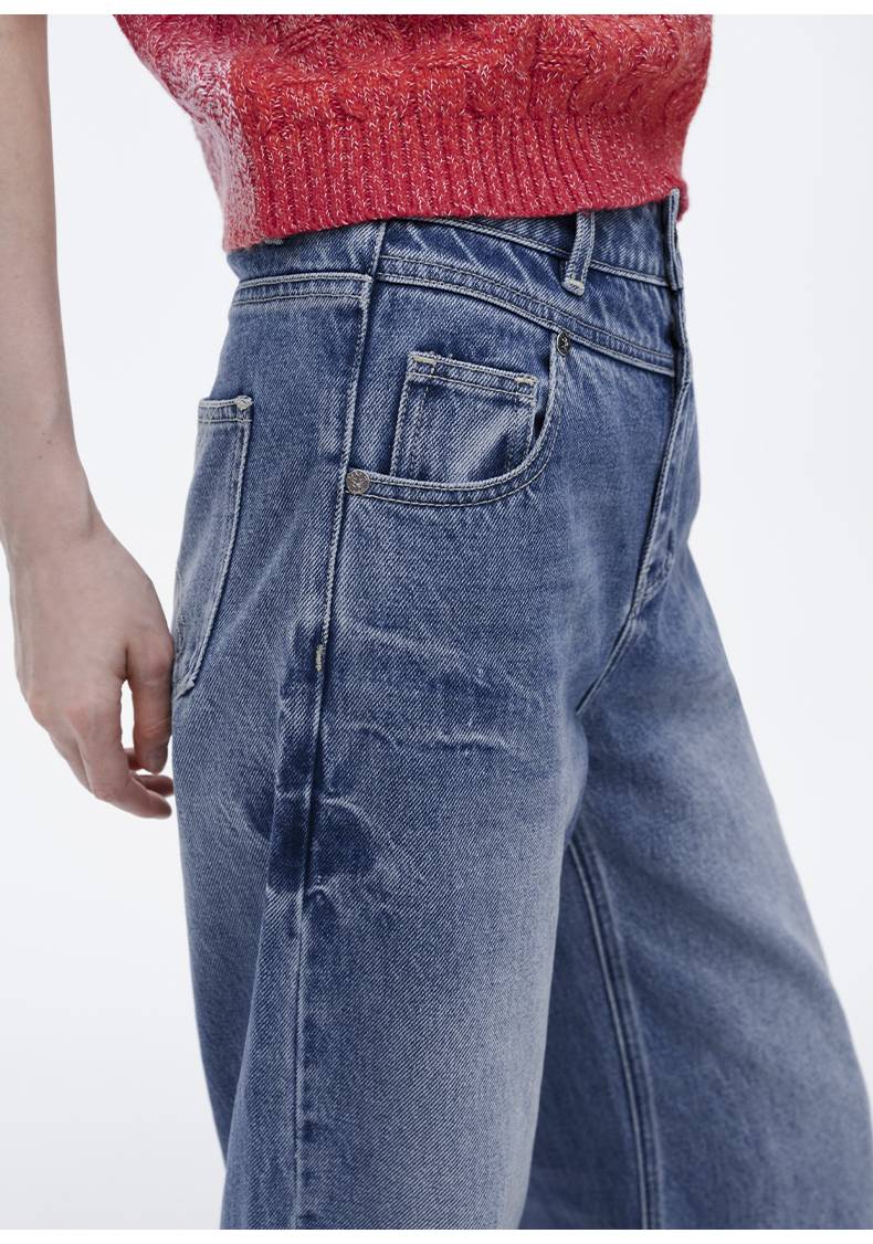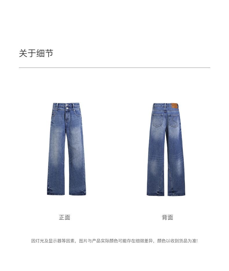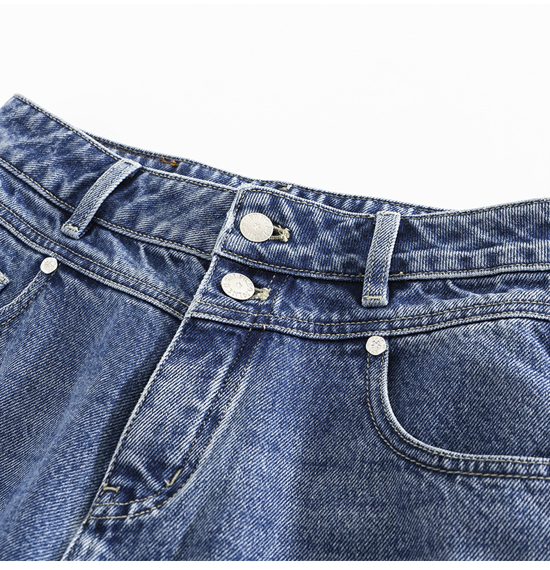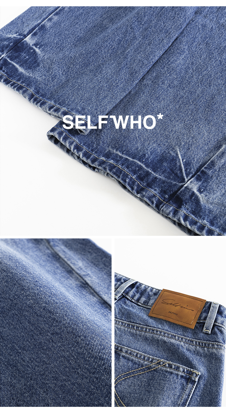 SELFWHO纯棉复古洗水双腰头牛仔裤女2025春季新款宽松百搭阔腿裤
