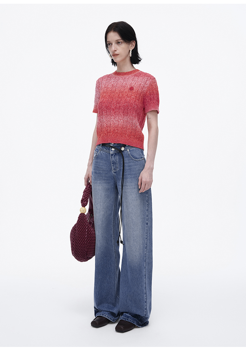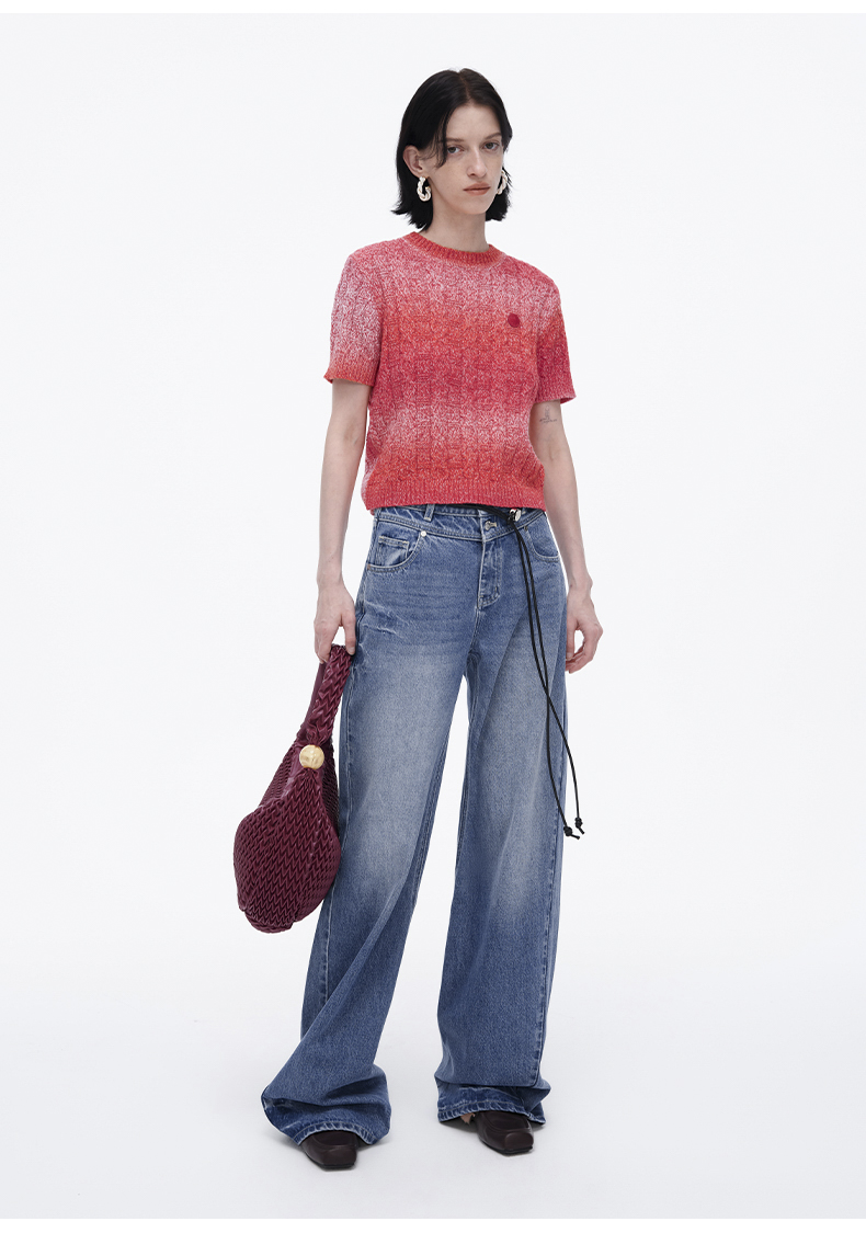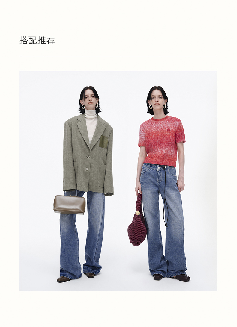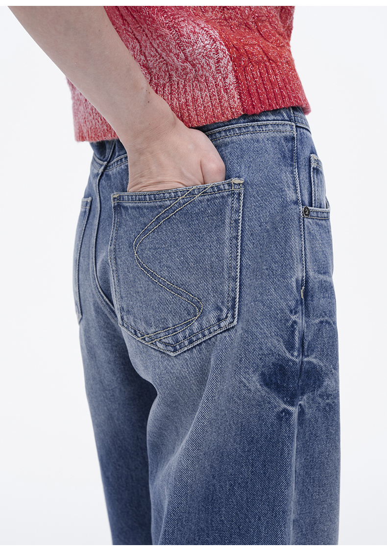 SELFWHO纯棉复古洗水双腰头牛仔裤女2025春季新款宽松百搭阔腿裤