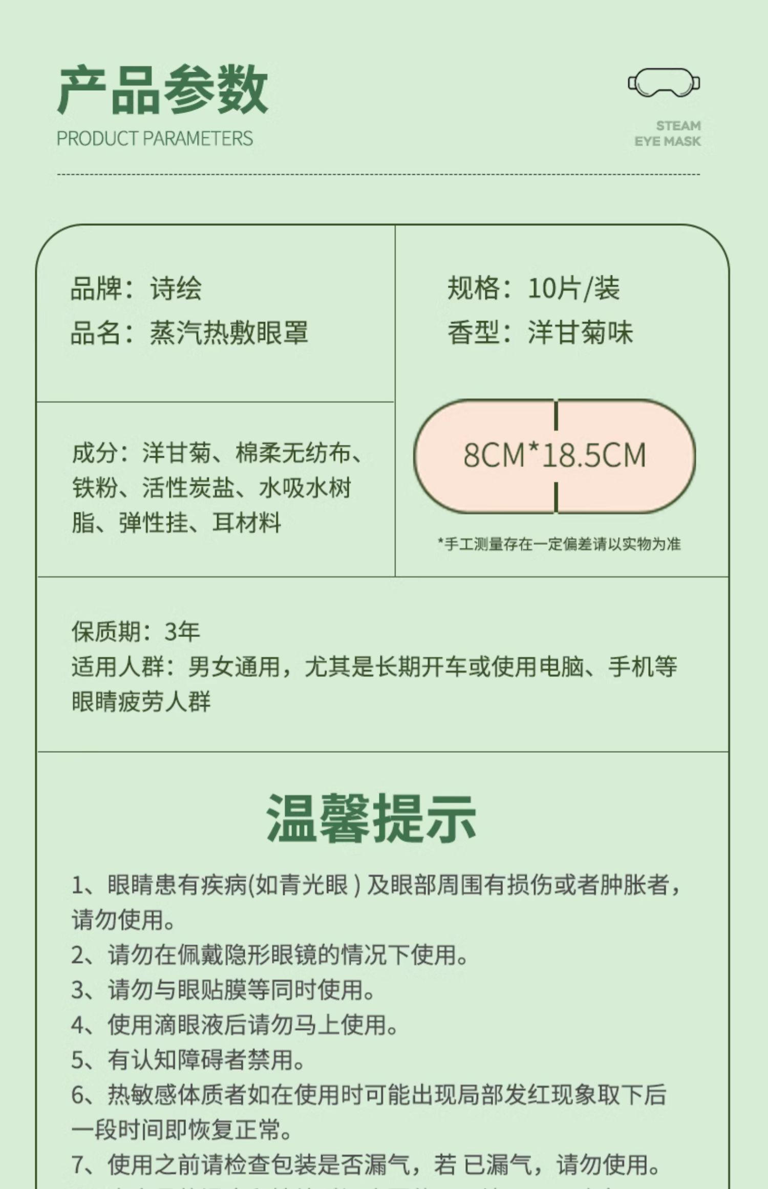 诗绘蒸汽眼罩缓解眼部疲劳眼贴