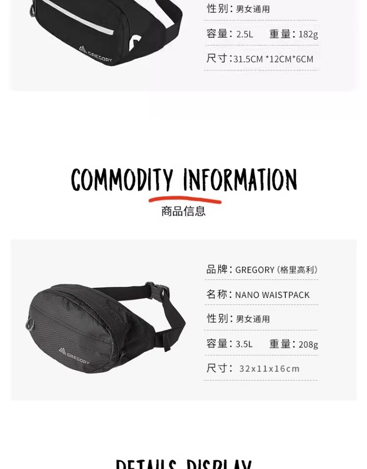 Gregory格里高利NANO WAISTPACK 蜂鸟腰包男女款户外腰包徒步登山包旅行腰包