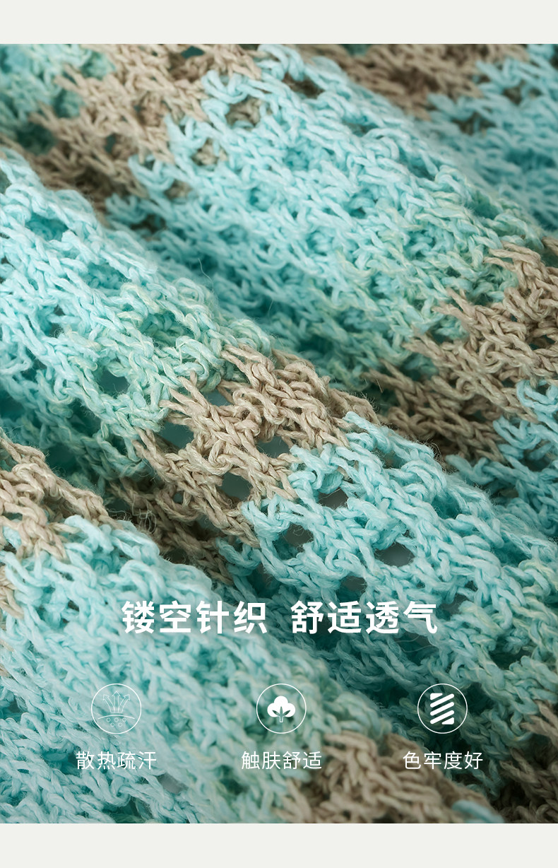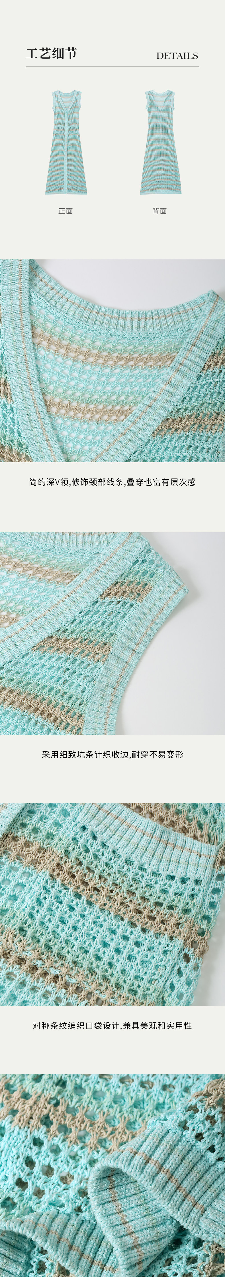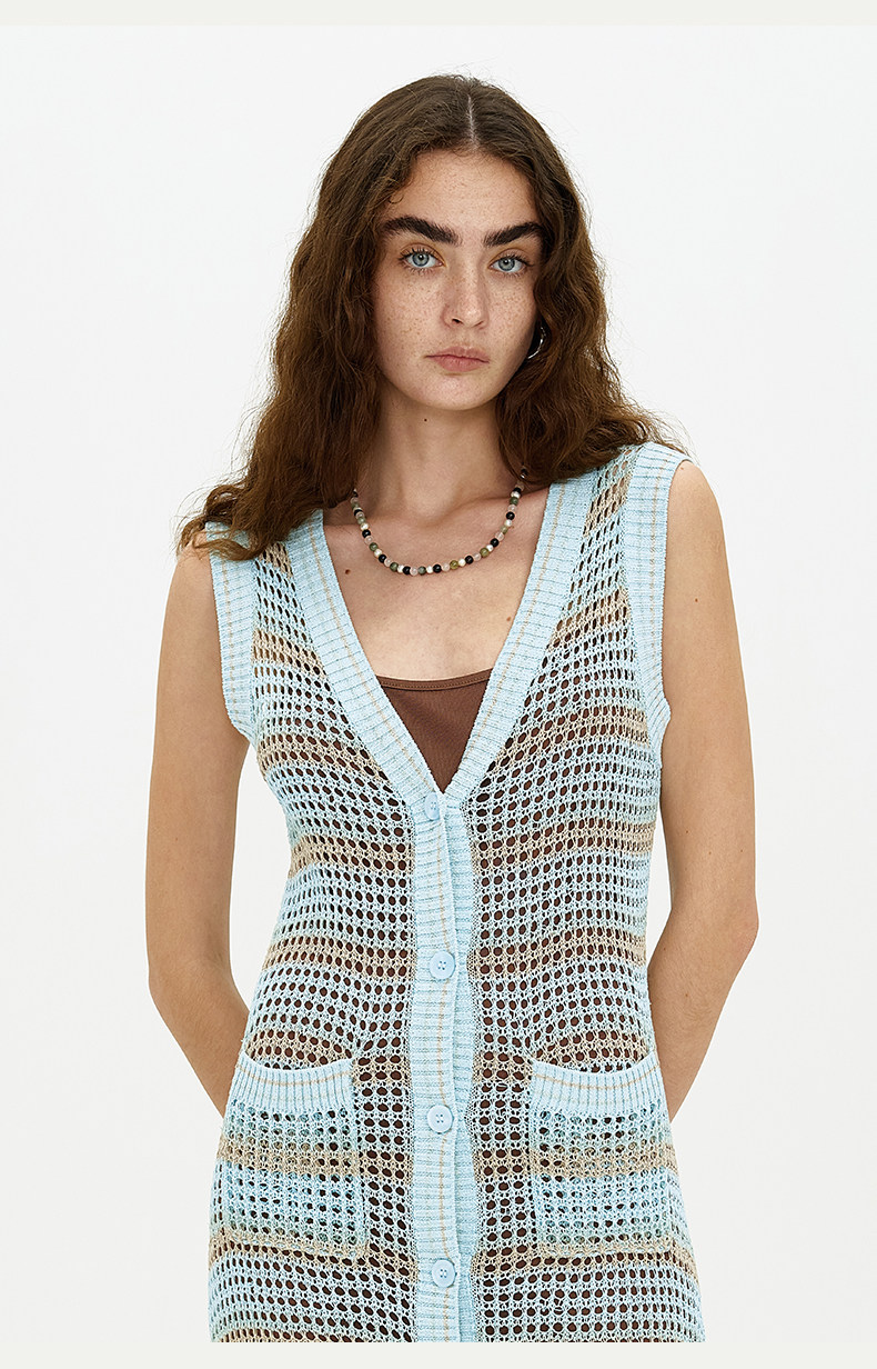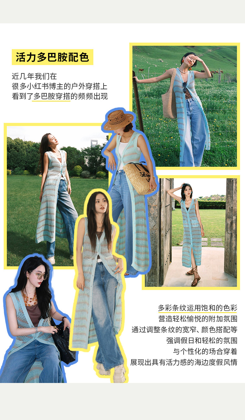 [赵昭仪同款]SELFWHO针织开衫连衣裙女夏季条纹镂空海边度假长裙