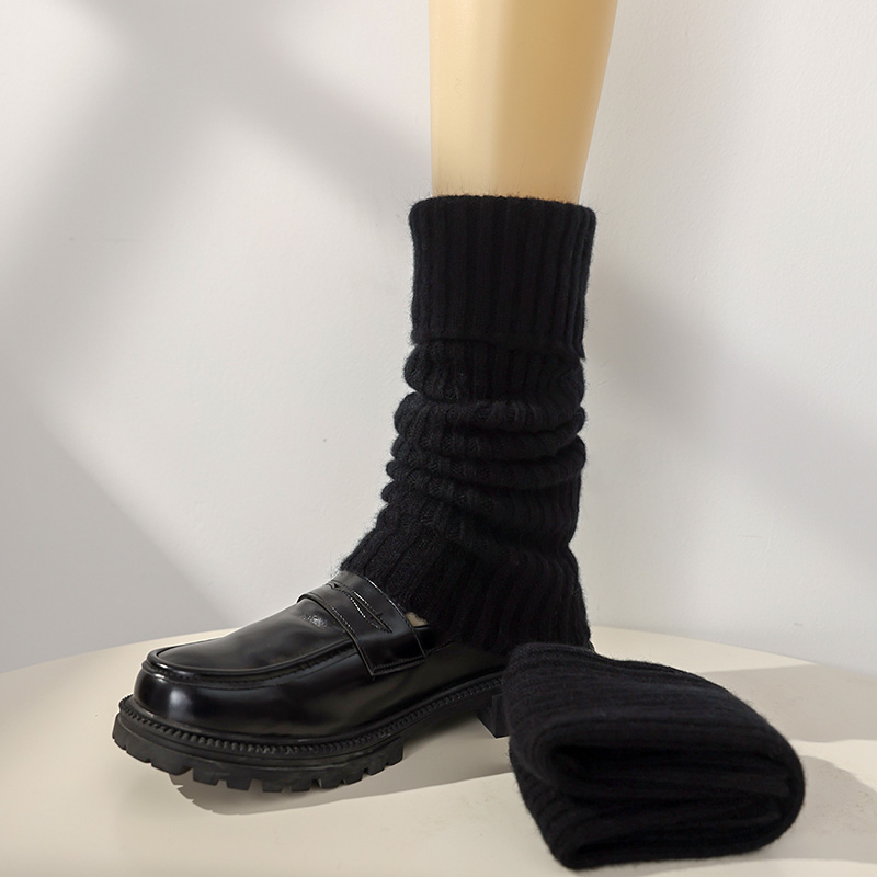 【暖冬拍档】100%纯山羊绒袜套长筒针织保暖堆堆袜保暖腿袜