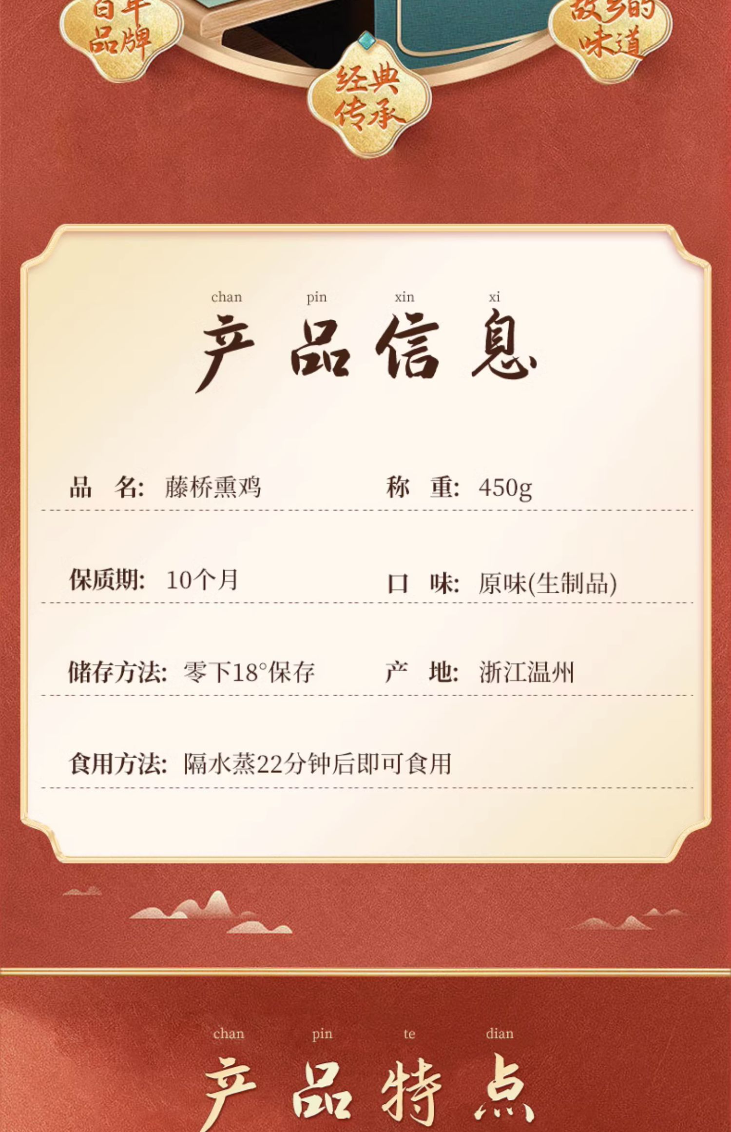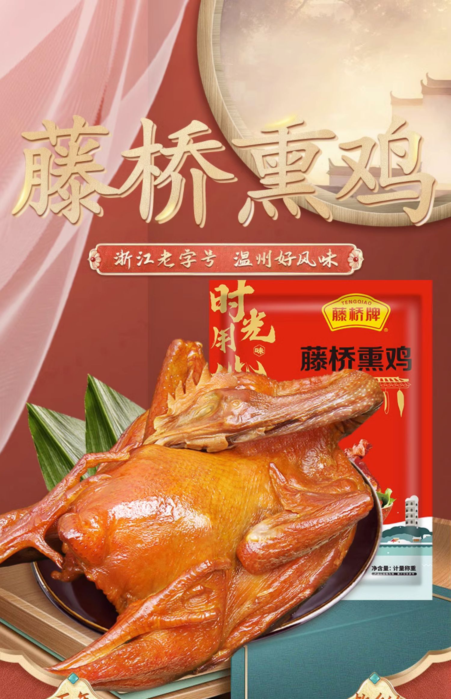 【生鲜】藤桥牌温州特产小吃鸡肉珍品熏鸡生制品腊熏鸡450g
