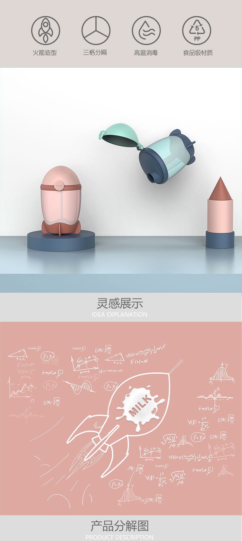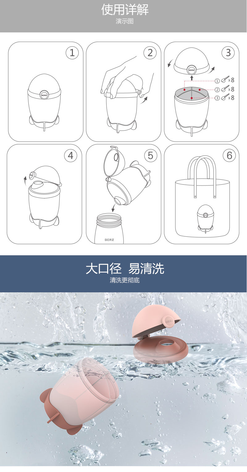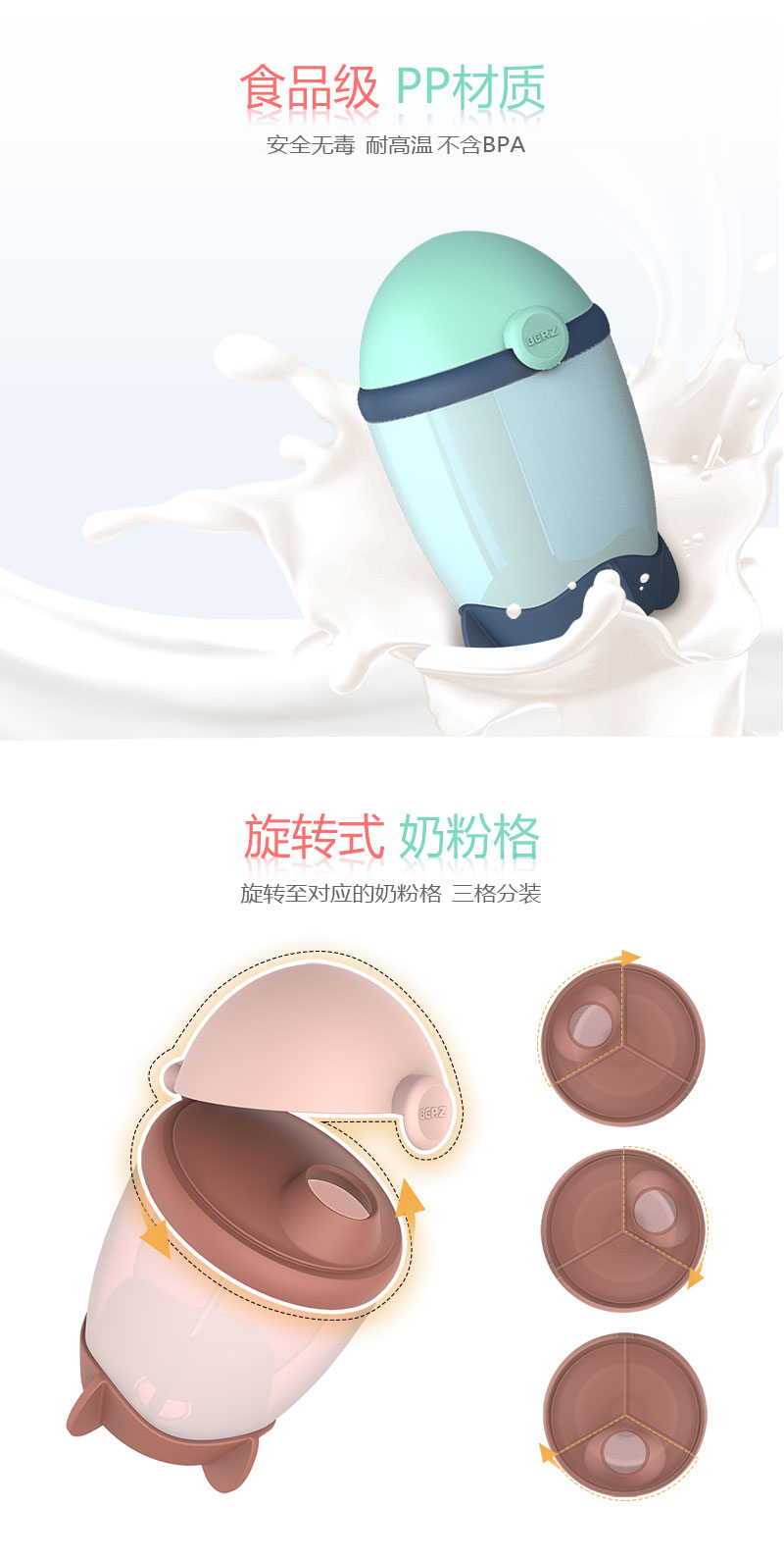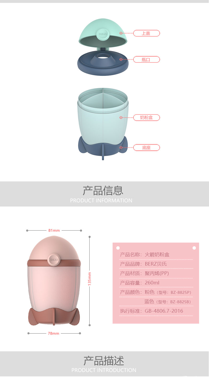 BERZ贝氏 火箭三格奶粉盒260ml