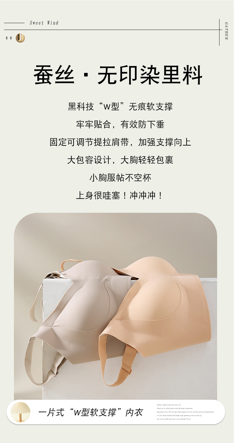 桑蚕丝双效提拉大胸显小小胸聚拢高侧翼收副乳隐形内衣8822