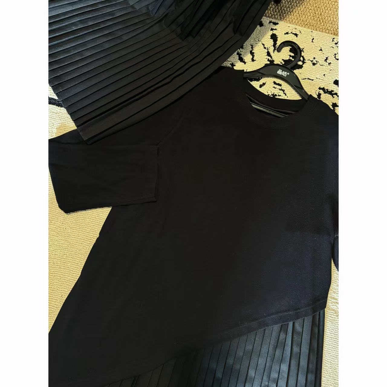 25AW上新【现货折上95折】 佳佳同款【琴法手则】下摆斜边拼接捏褶圆领连衣长裙长袖假两件长裙