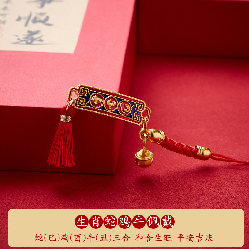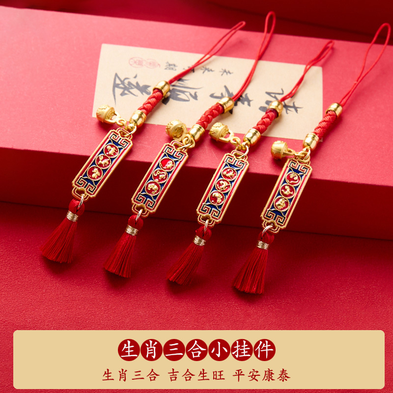 【敦煌禄和·生肖三合小挂件】蛇年国风三合生肖手机挂件 本命年编织男女小吉祥物红绳钥匙扣