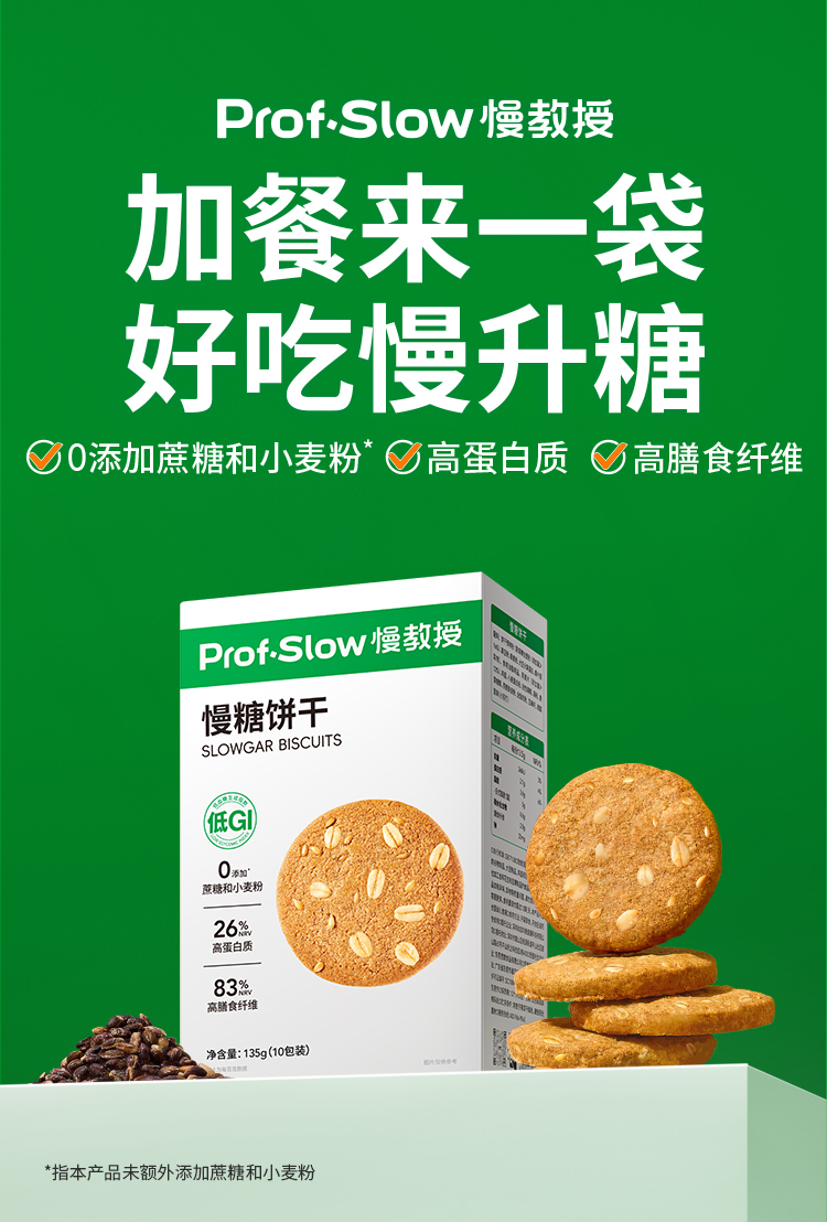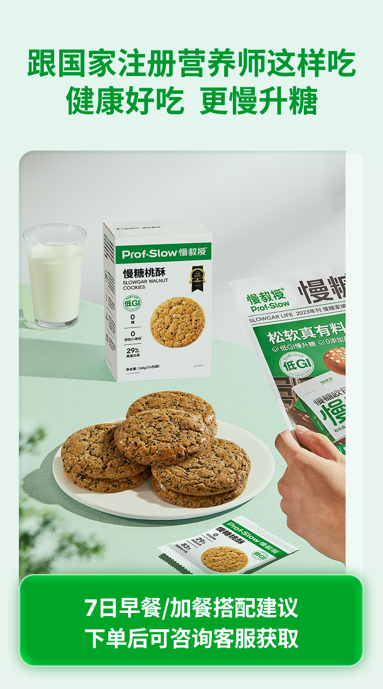 「慢教授ProfSlow」(原慢糖家),专注于科学控糖的健康营养品牌。由2位浙大校友创立,联合全球优秀的食品科学家和健康营养专家,为有控糖需求的用户研发好吃、低升糖的健康食品和营养补充剂。