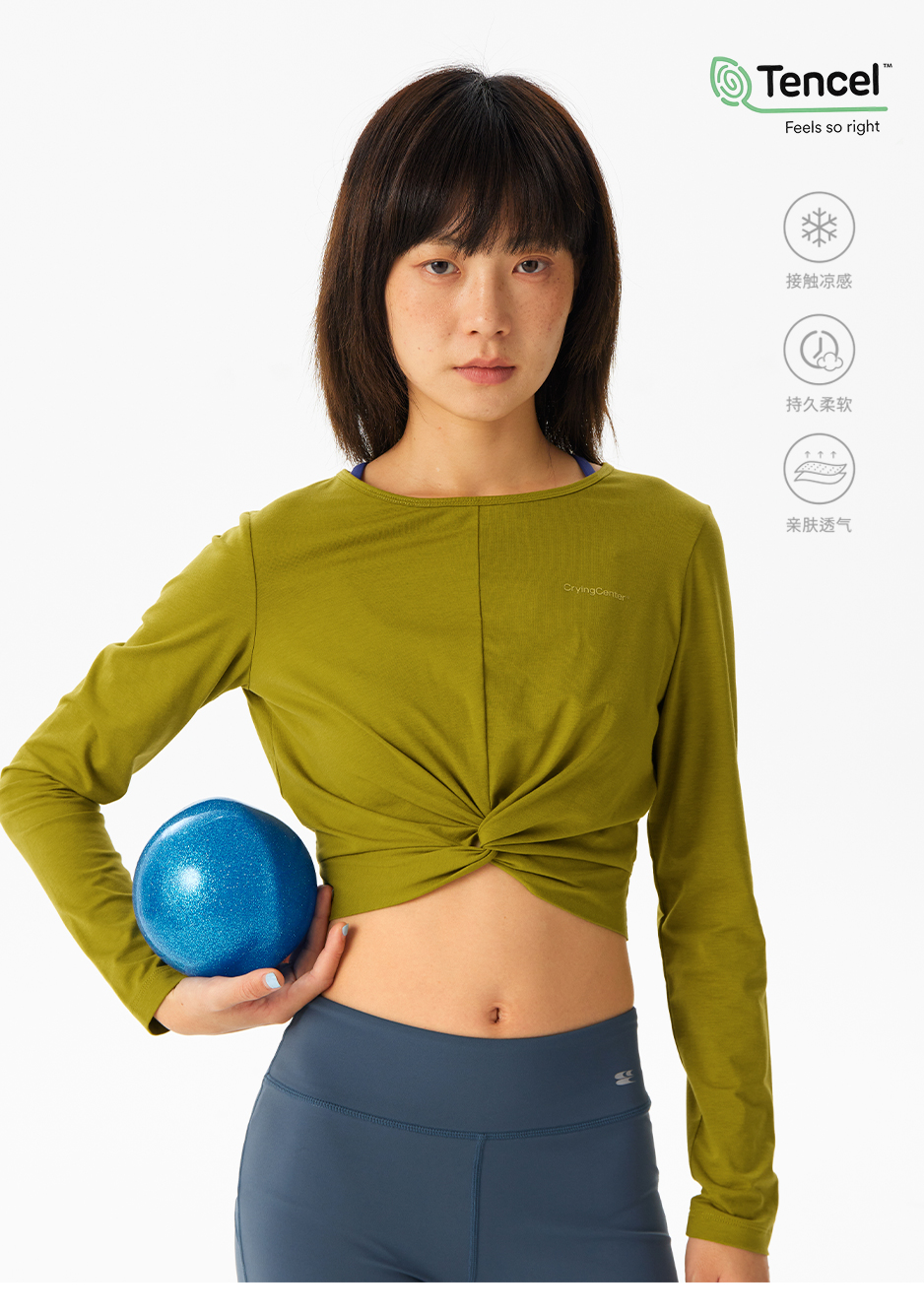 CryingCenter凉感天丝莫代尔亲肤透气紧身收腰瑜伽上衣训练服长袖