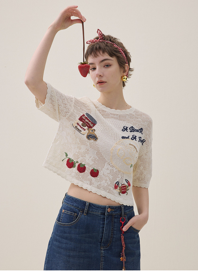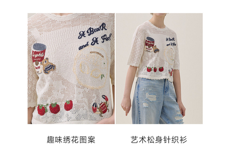 谜底套头针织衫短袖2026年夏季新品提花刺绣舒适毛衣女262MZ0790