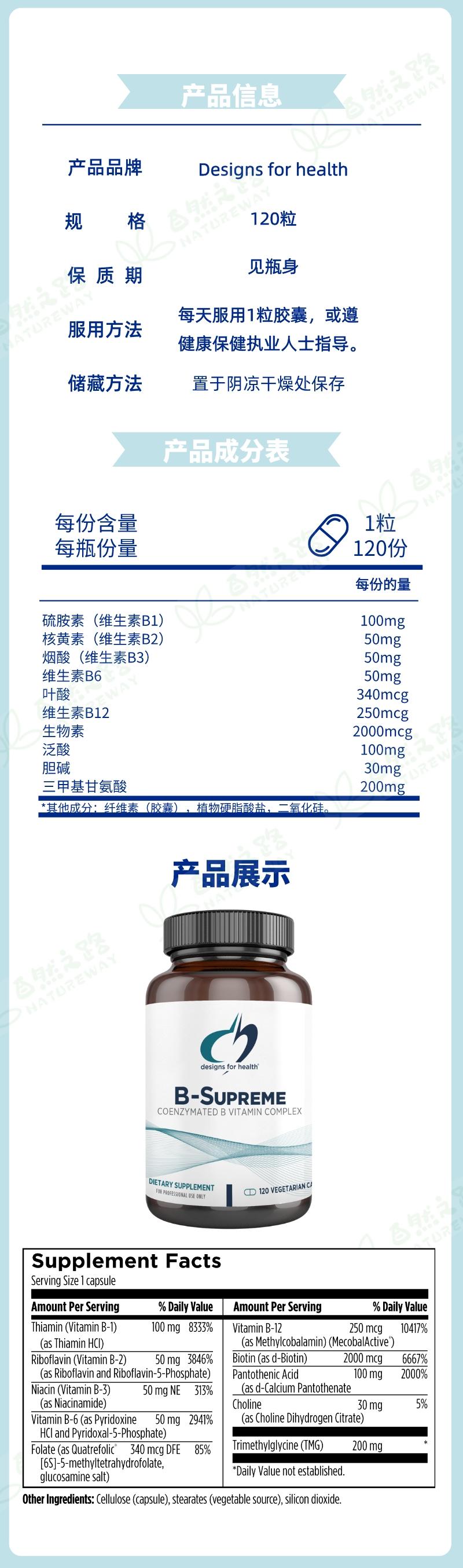 美国健康设计 B-Supreme 活性B 改SHAN睡眠 情绪支持 皮肤健康