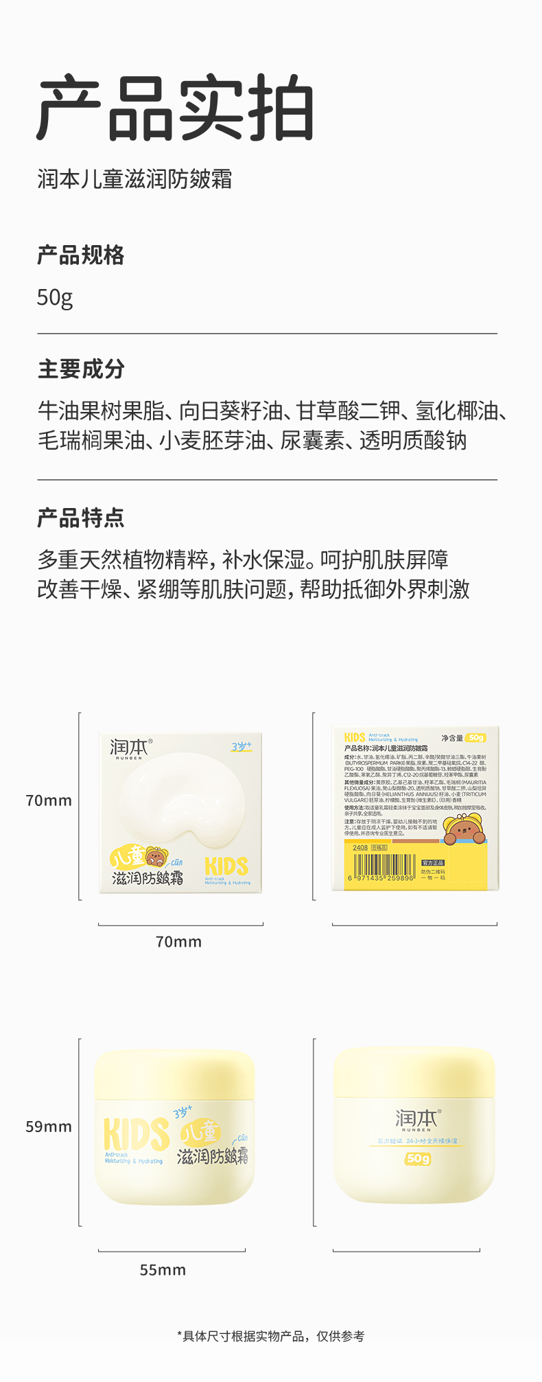润本儿童滋润防皴面霜 宝宝霜新生婴儿秋冬季滋润补水保湿儿童面霜