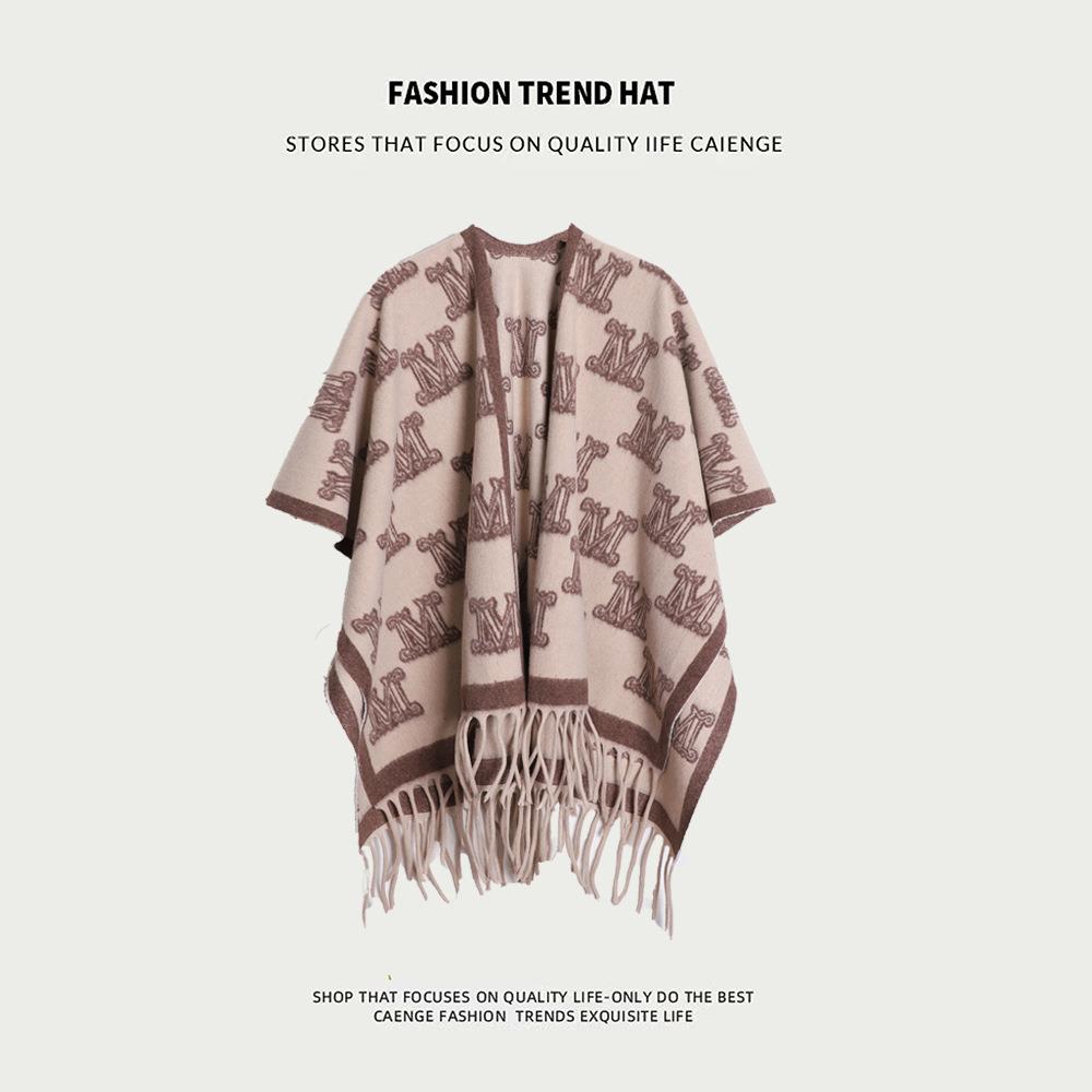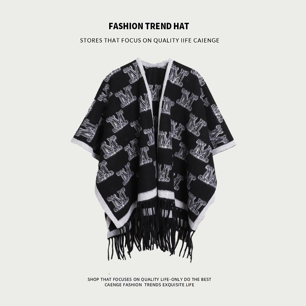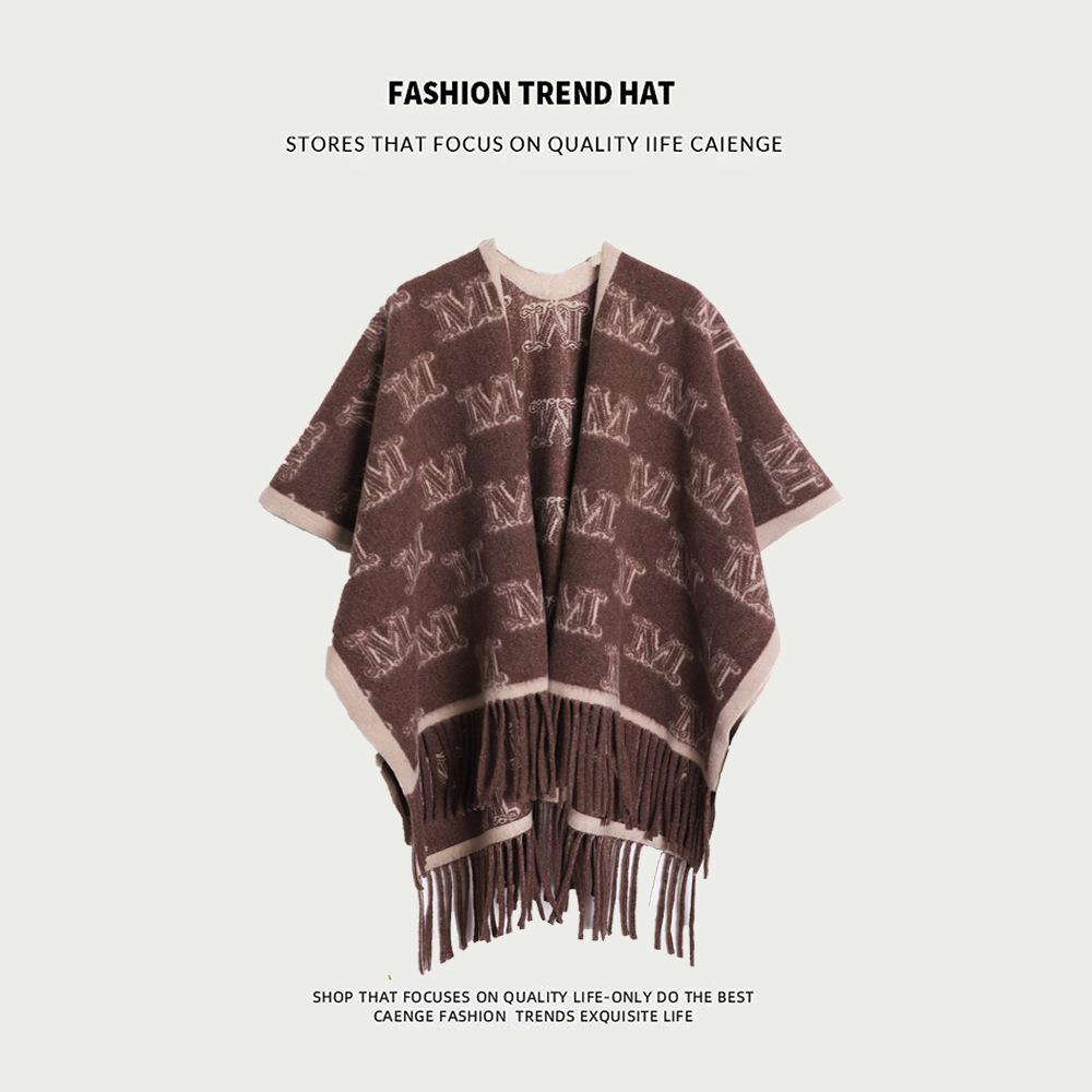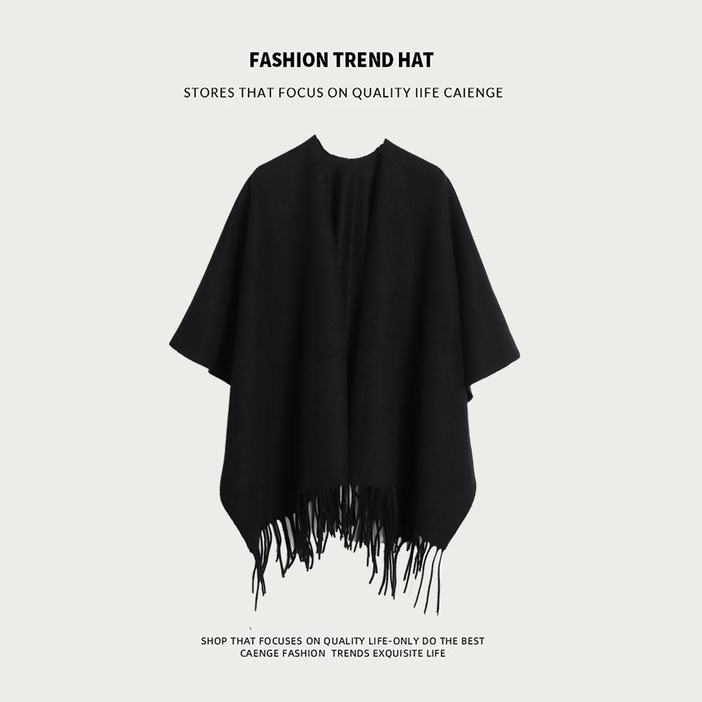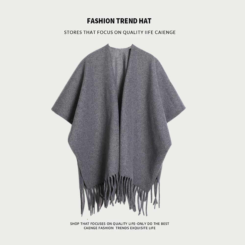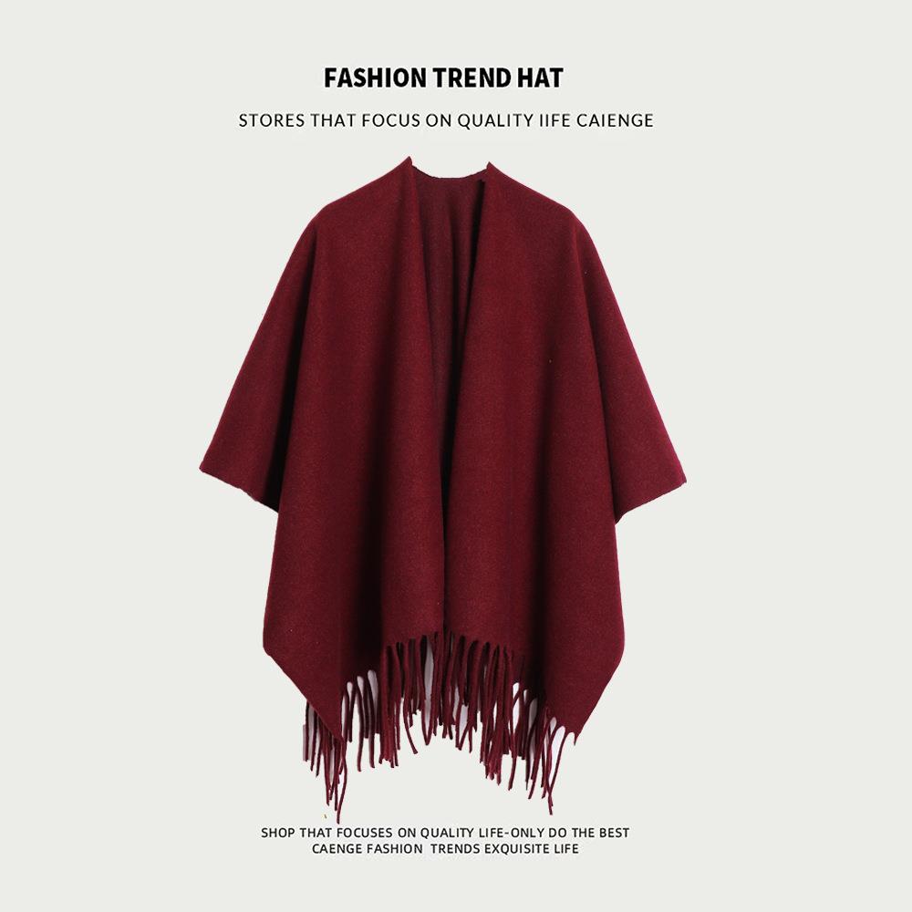 【百分百羊毛披肩女秋冬季超大加厚斗篷】外套旅游空调房开叉披风毛毯