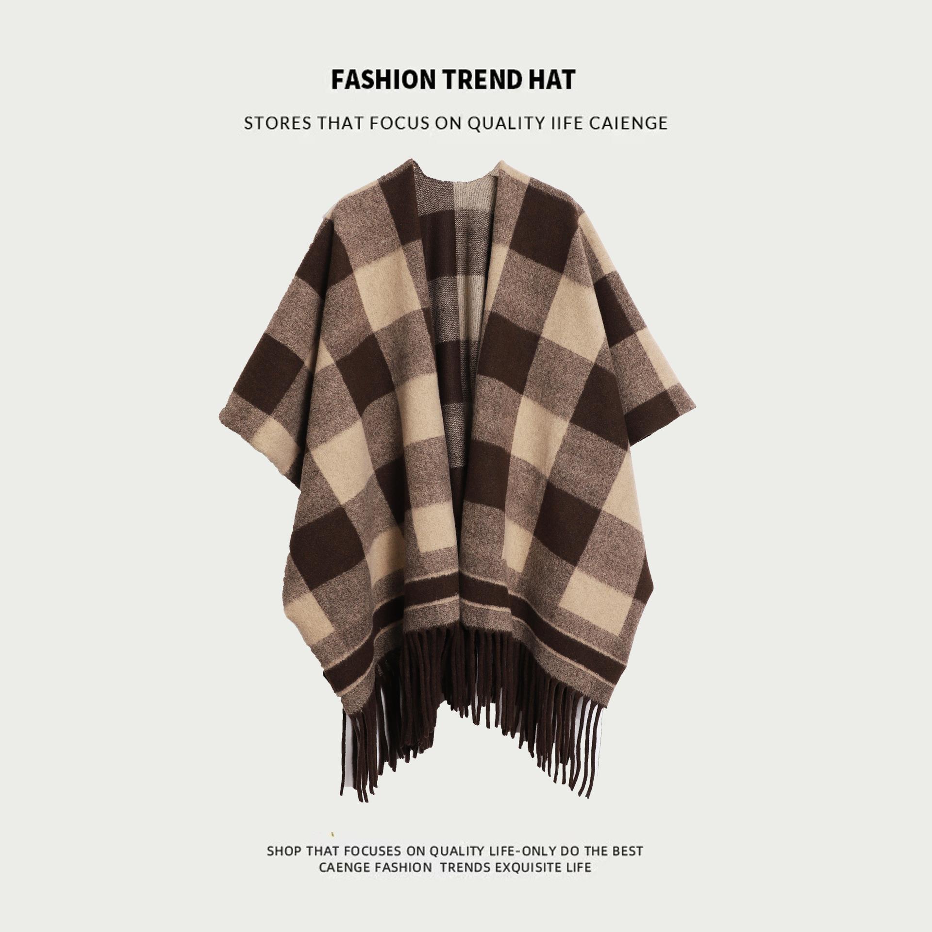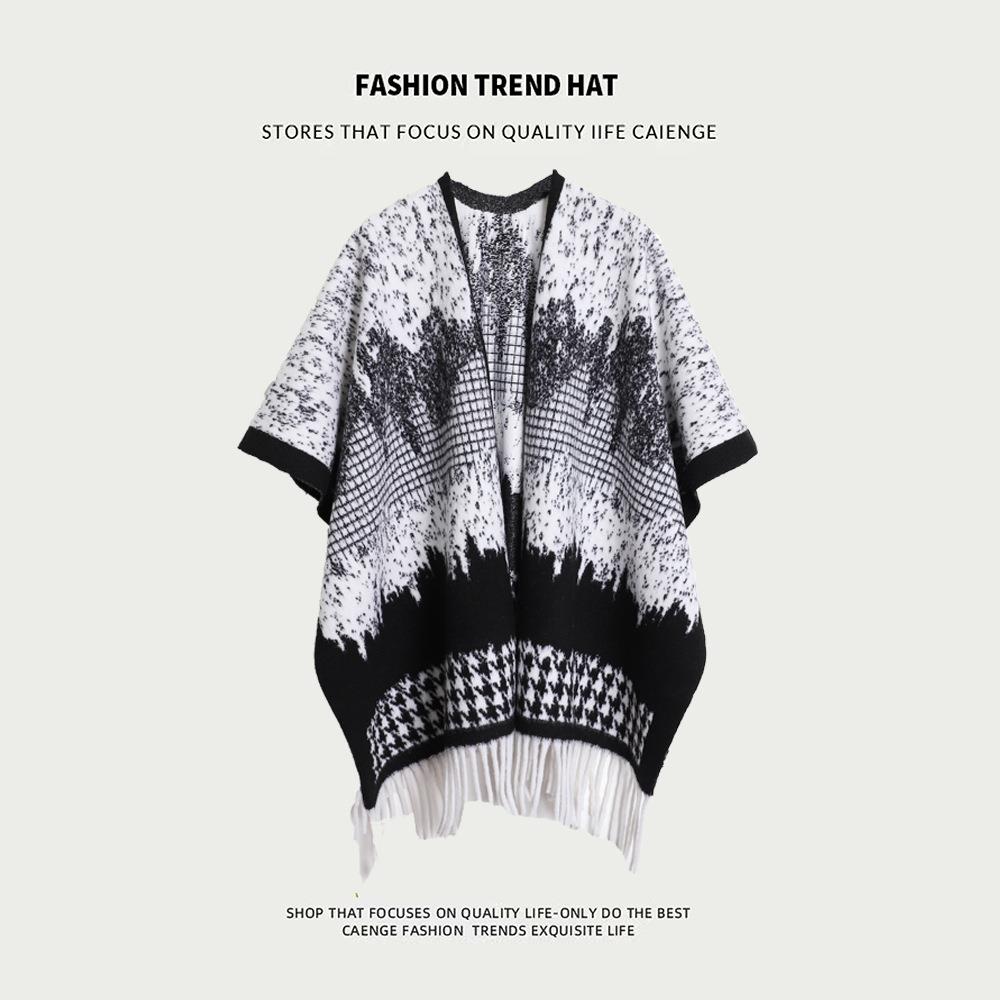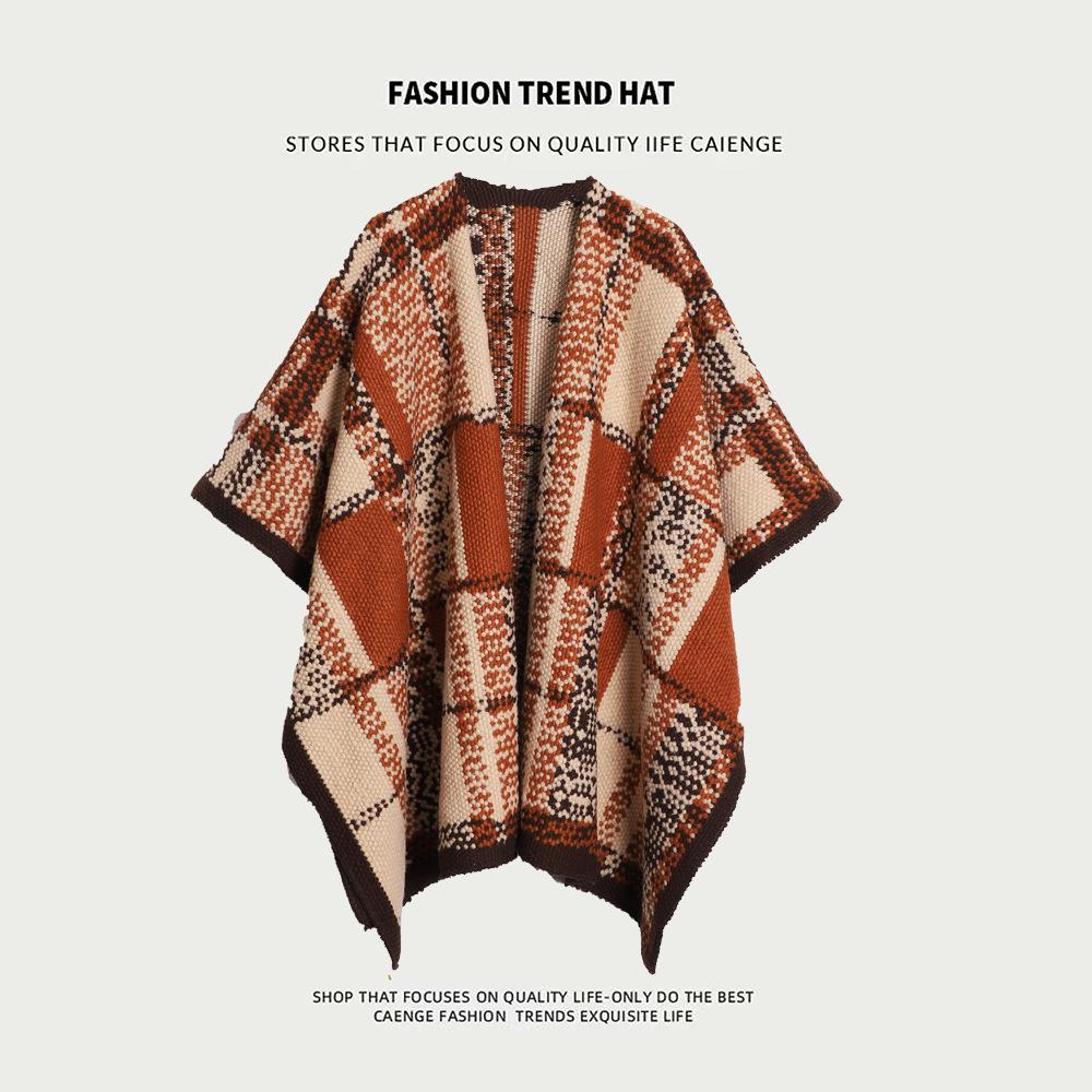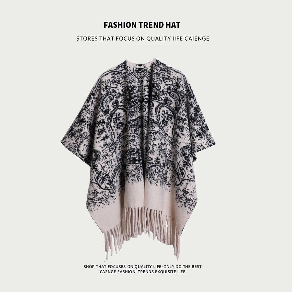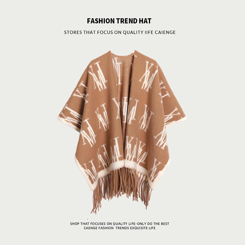 【百分百羊毛披肩女秋冬季超大加厚斗篷】外套旅游空调房开叉披风毛毯