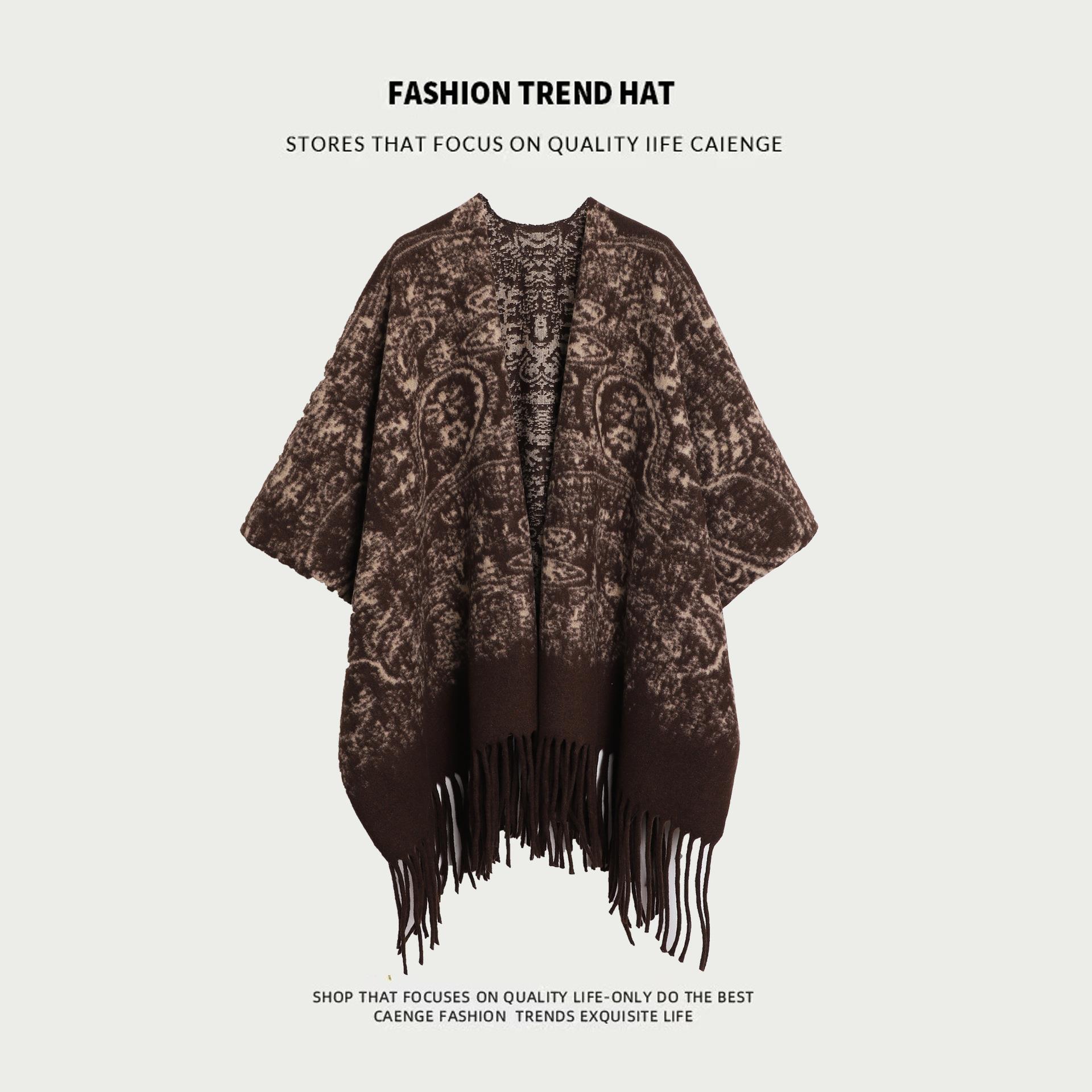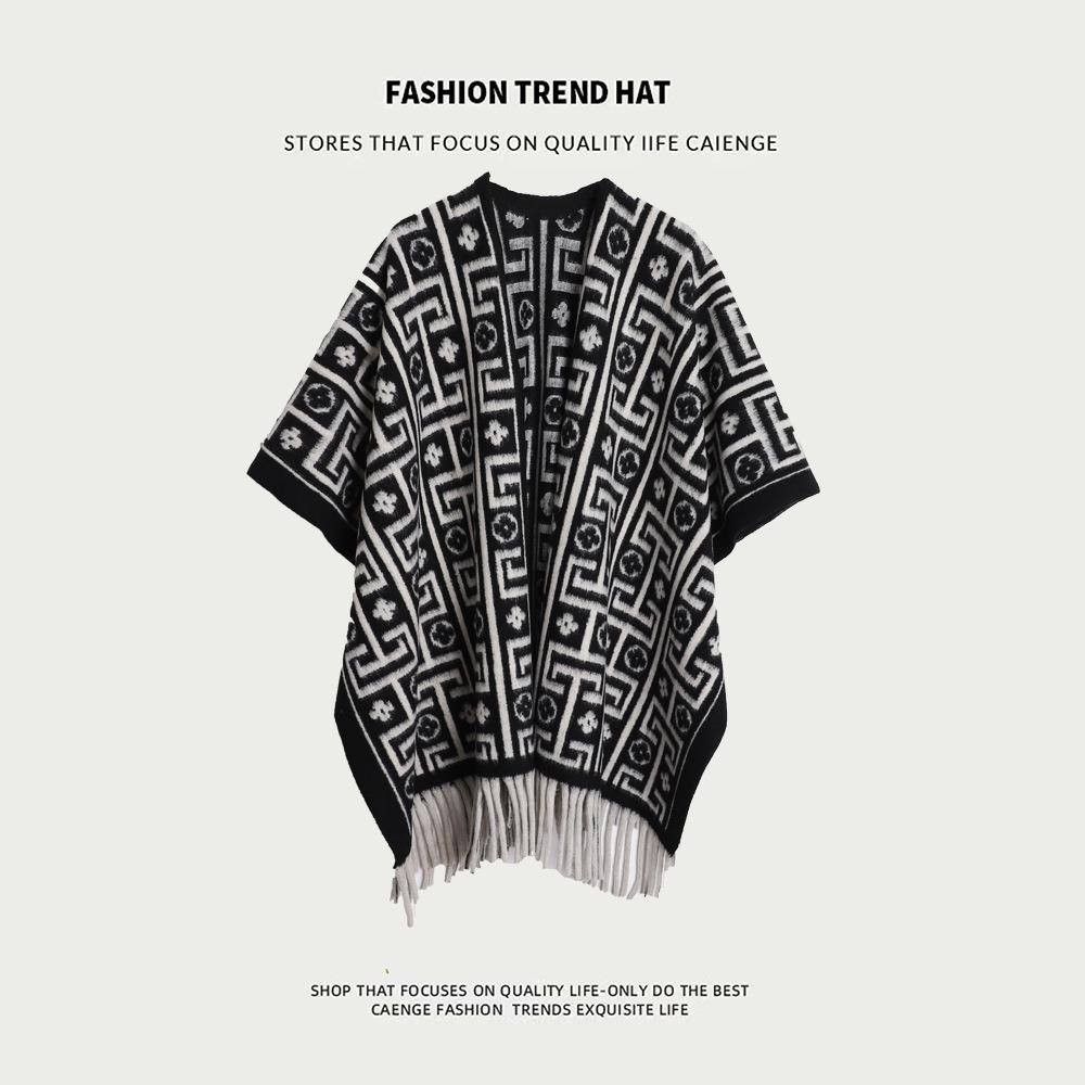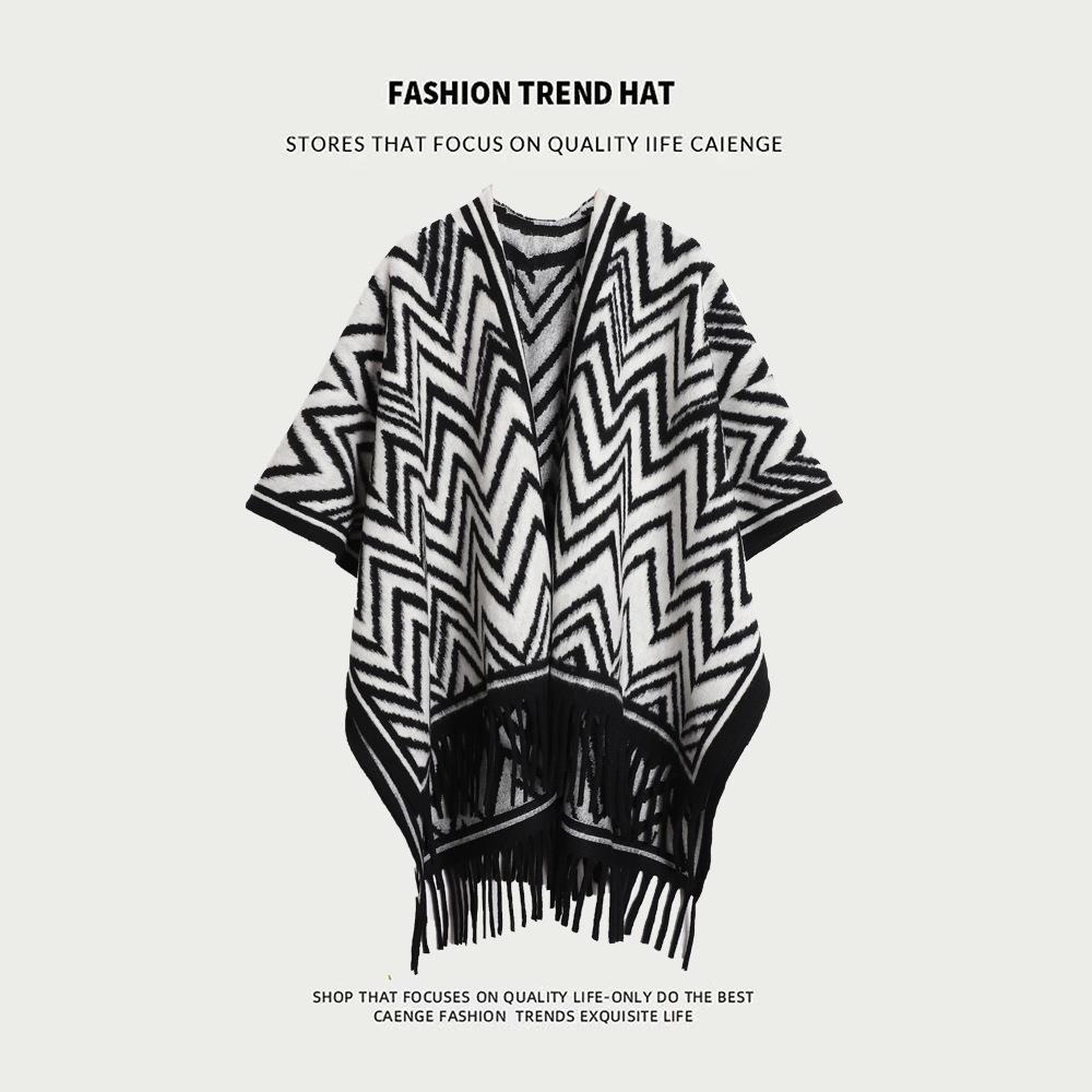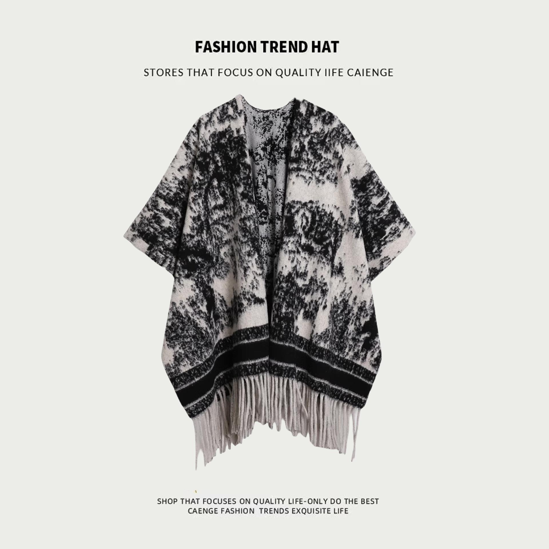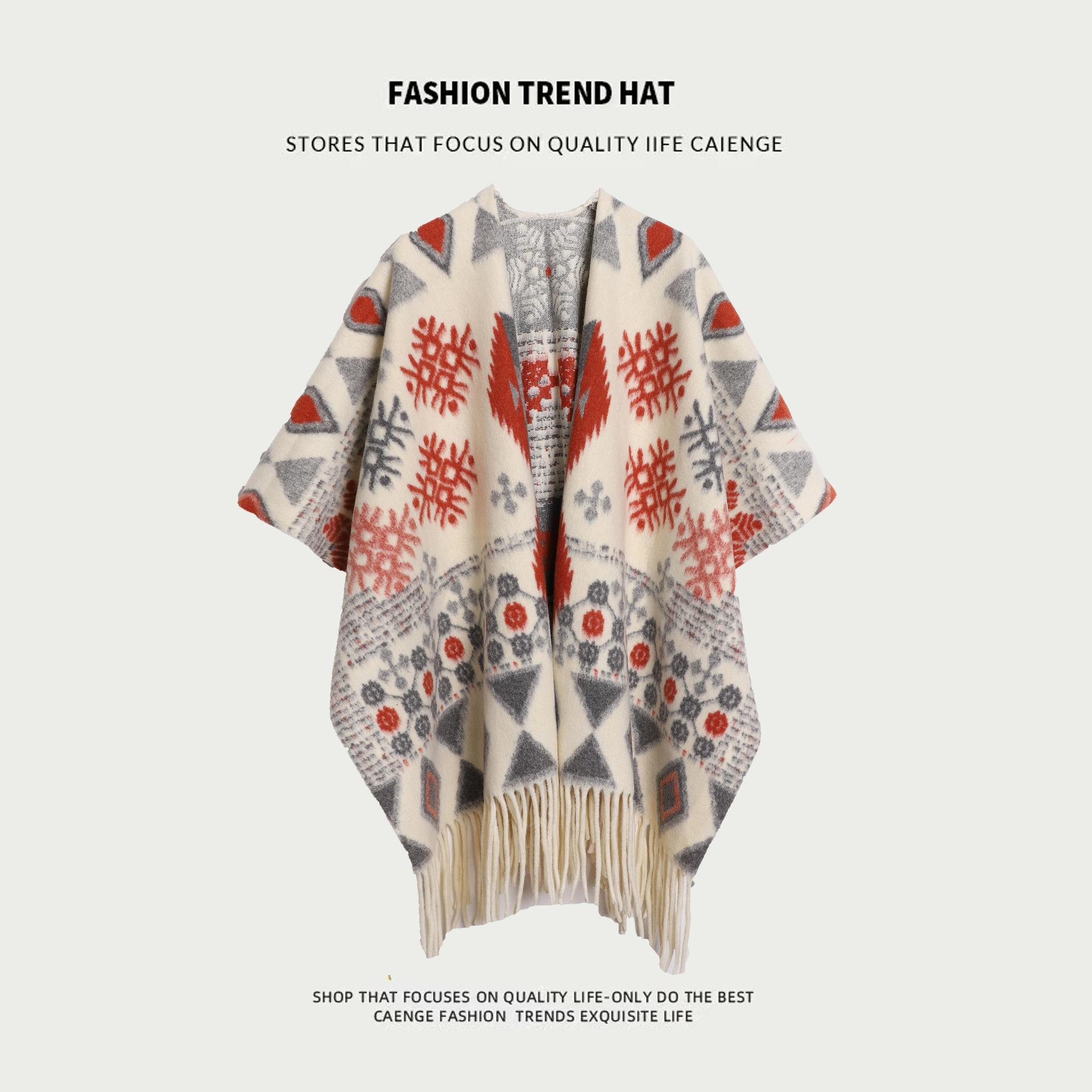 【百分百羊毛披肩女秋冬季超大加厚斗篷】外套旅游空调房开叉披风毛毯